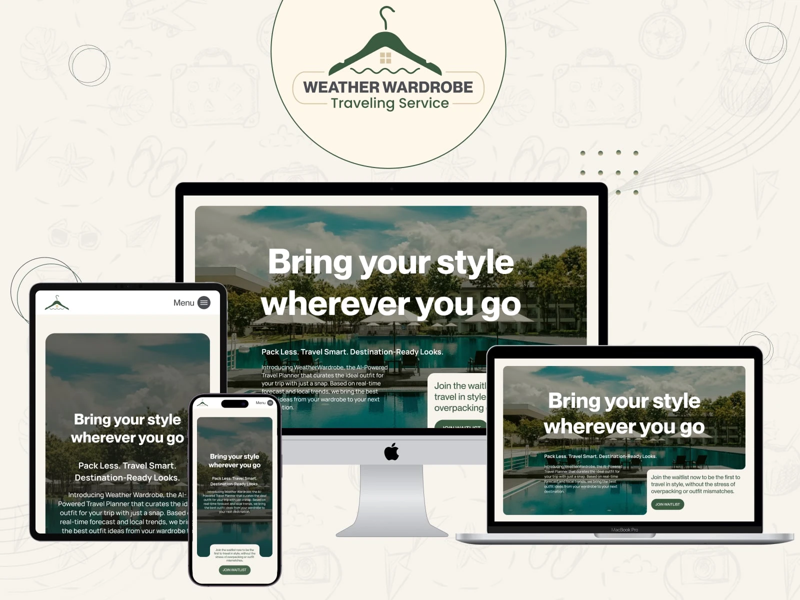 Curated outfits based on real-time weather. Clean, responsive design across desktop, tablet, and mobile.