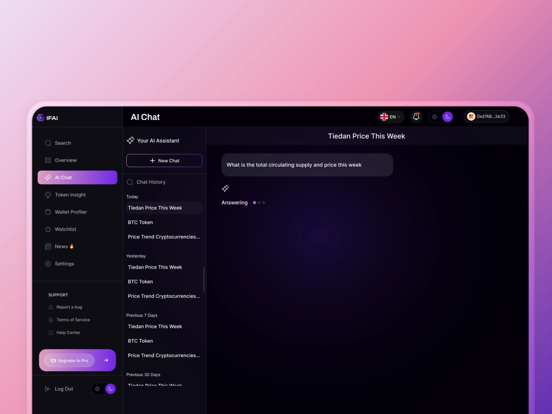 MY ROLE: Is to create a simple and intuitive way for users to search tokens and get an analysis report within a single AI chat interface