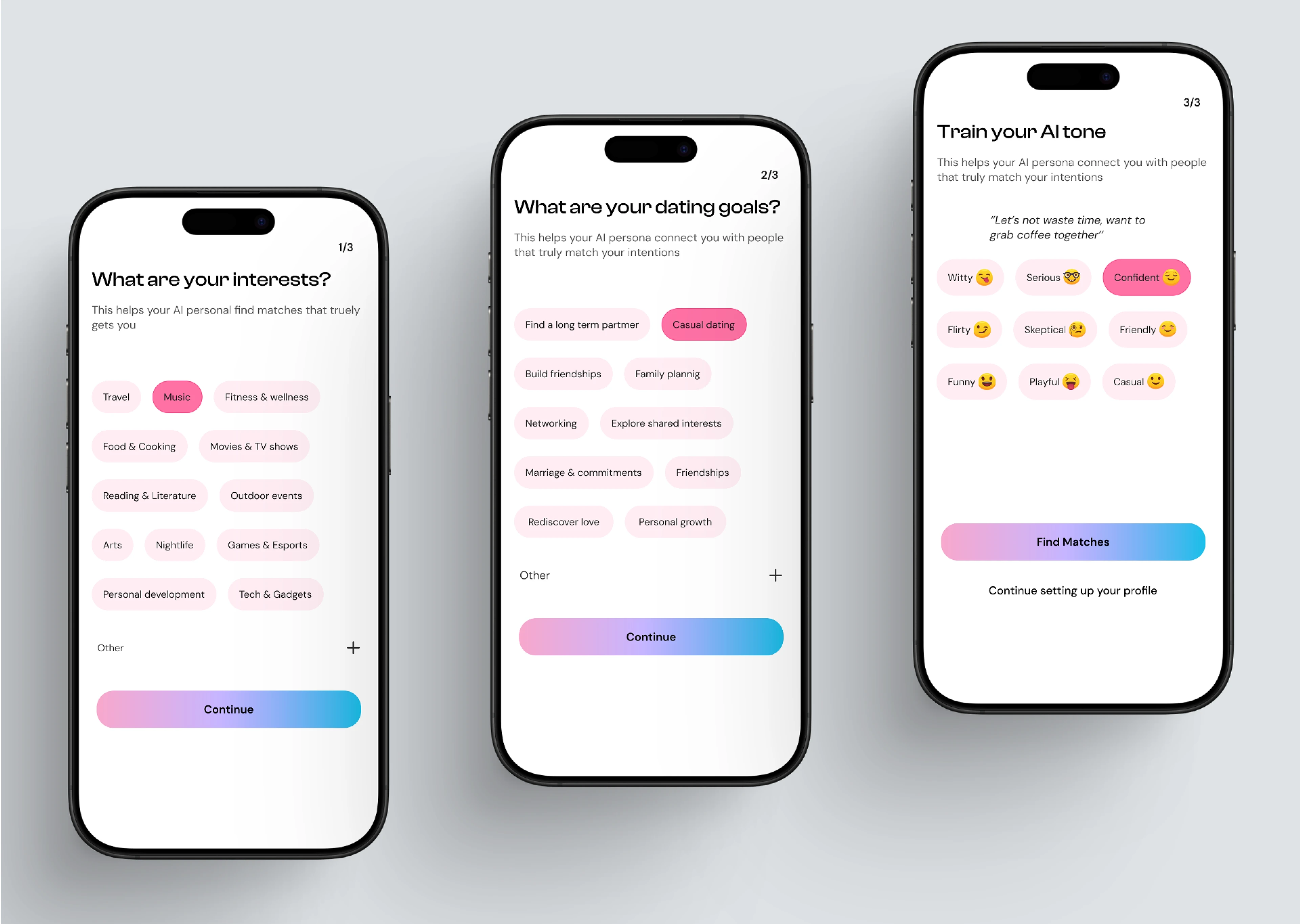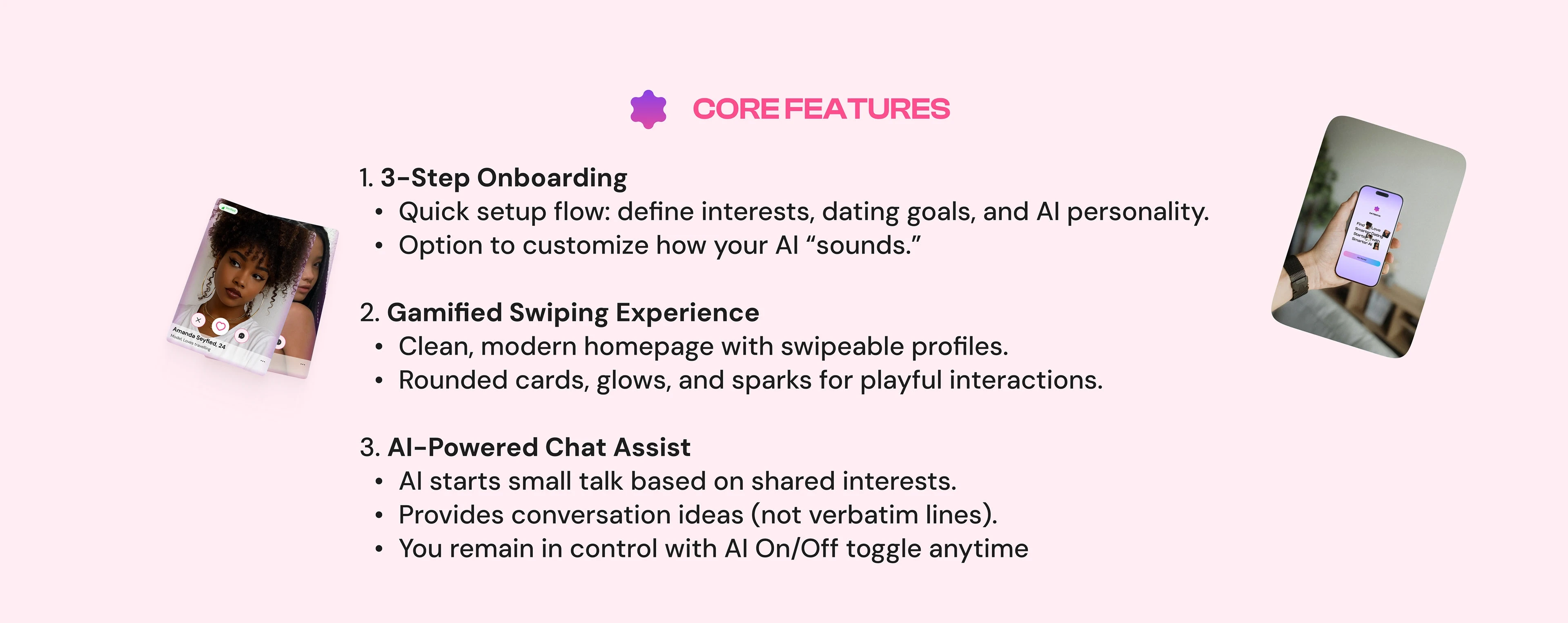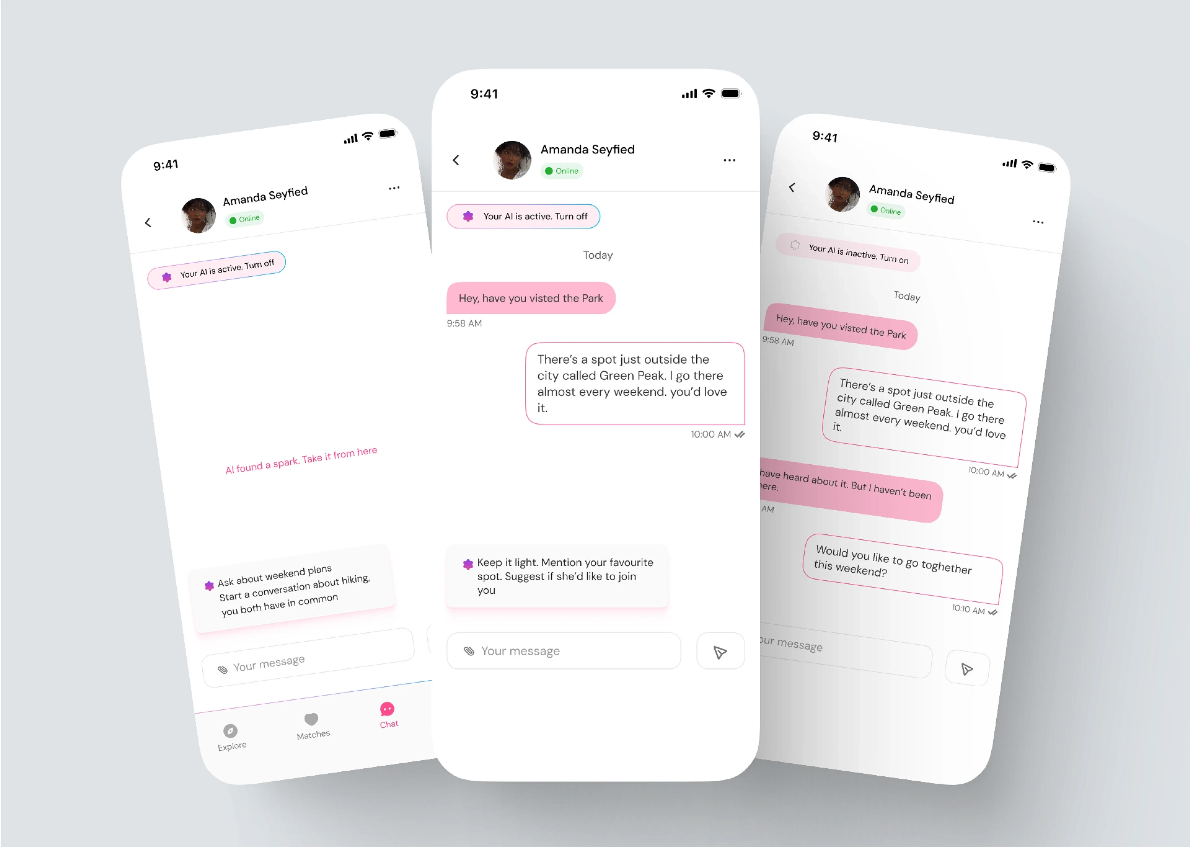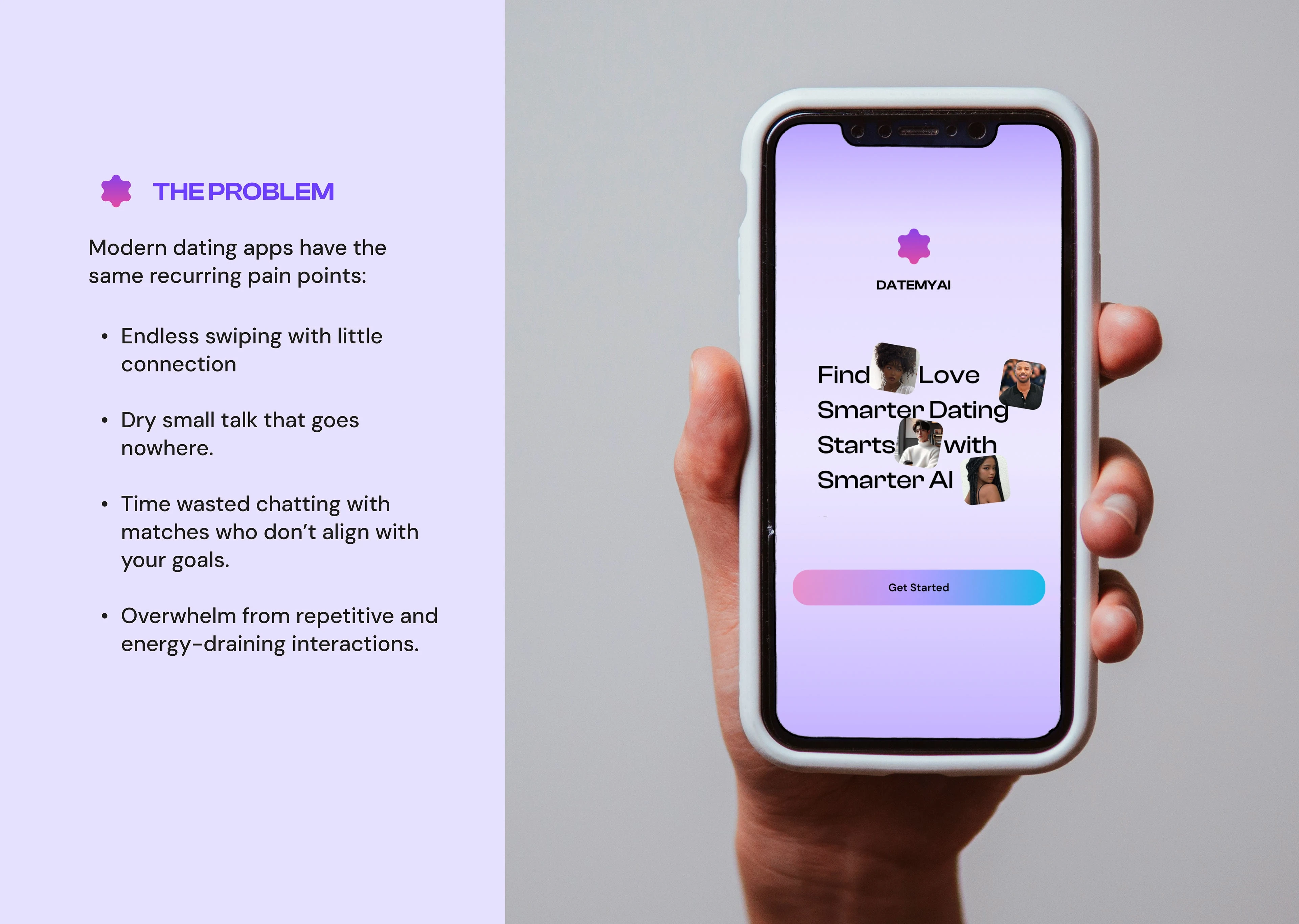 DATEMYAI is a gamified AI-powered dating app that filters matches, sparks natural conversations, and keeps you in control of your dating journey. Product design