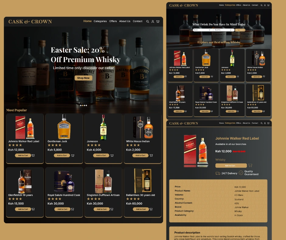 This whisky Store Website UI design delivers a premium and modern shopping experience for customers looking to explore & purchase a wide range of whisky online