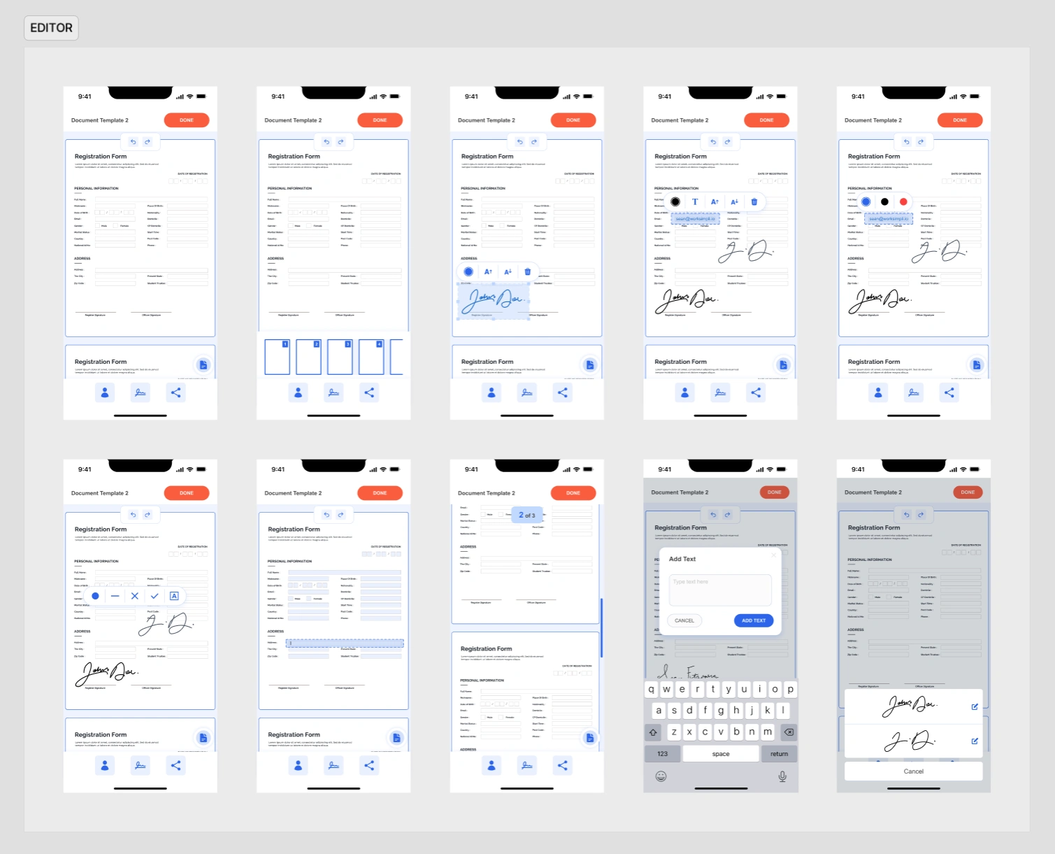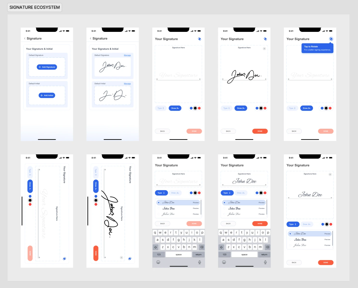 Led the end-to-end interaction design of the Fill & Sign editor, defining feature hierarchy, access patterns, field insertion behavior, state management, contextual pop-ups, and rotation guidance. Balanced usability with technical feasibility while handling stakeholder-driven scope changes and designing additional features that were planned for future releases.