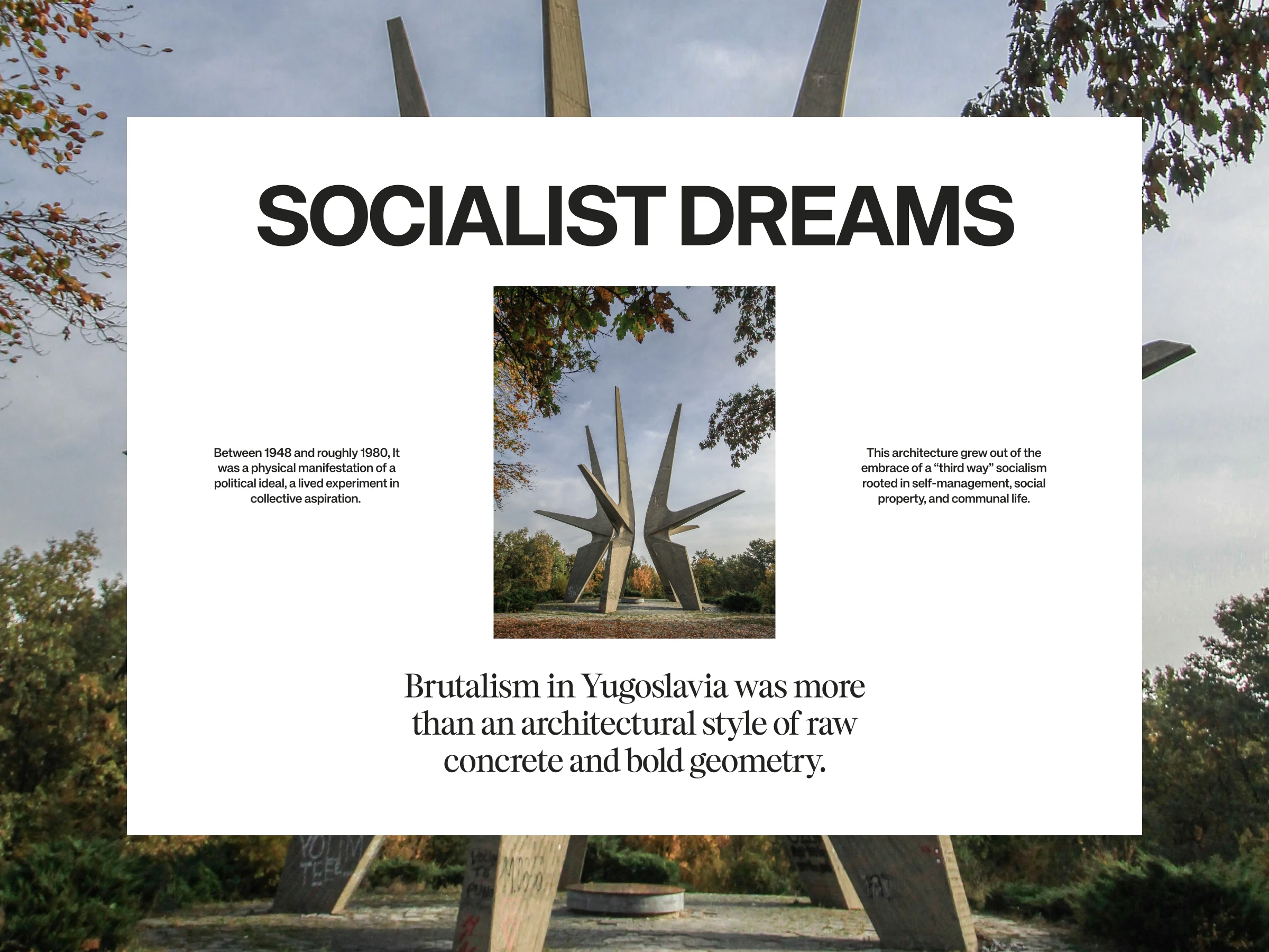 Editorial website on late Yugoslavian brutalist architecture, designed and developed in Framer.