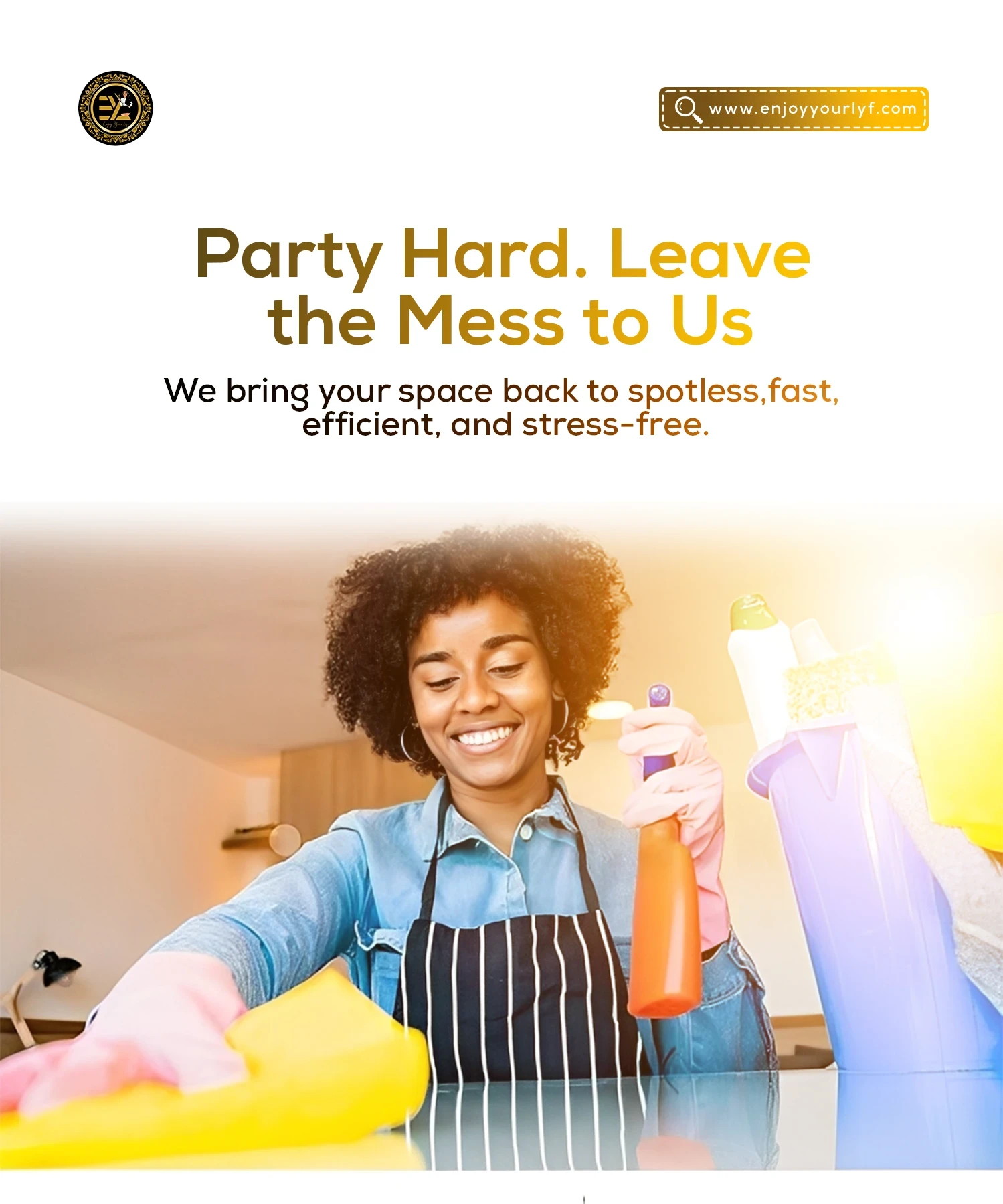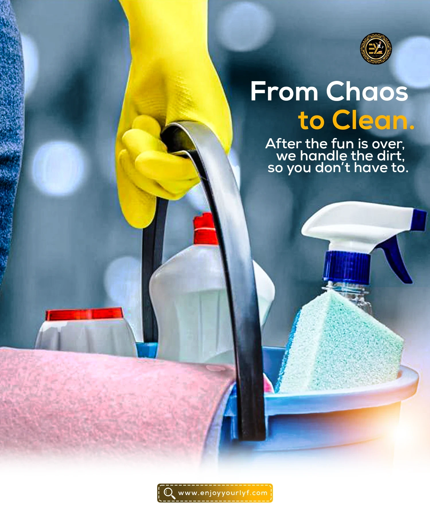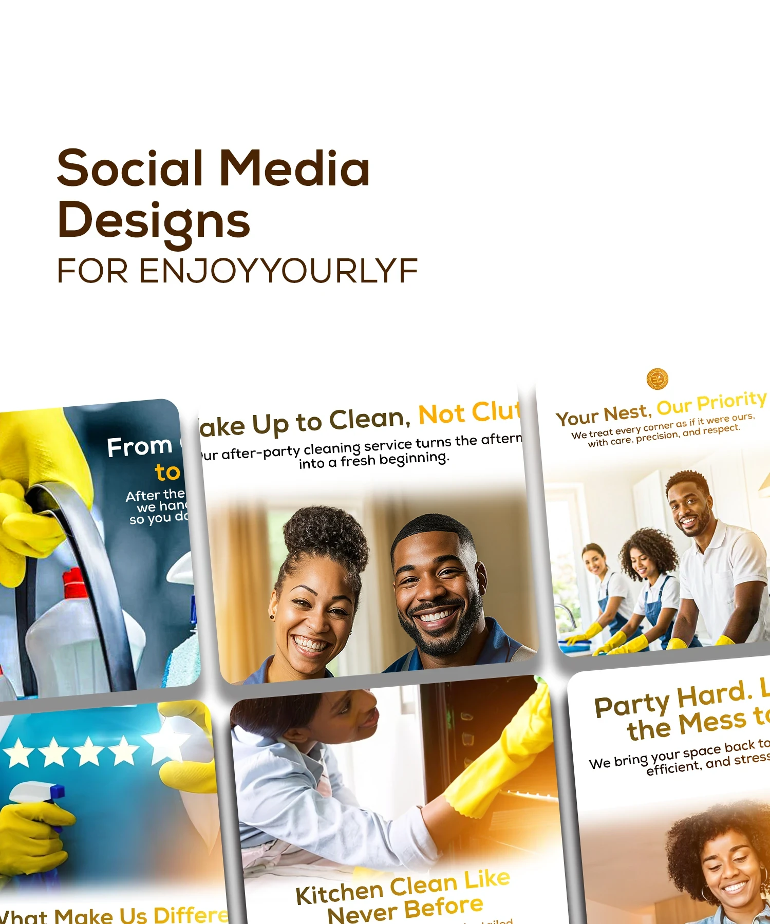 Social media carousel design for Enjoyyourlyf Hotel & Restaurant promoting their after-party cleaning service