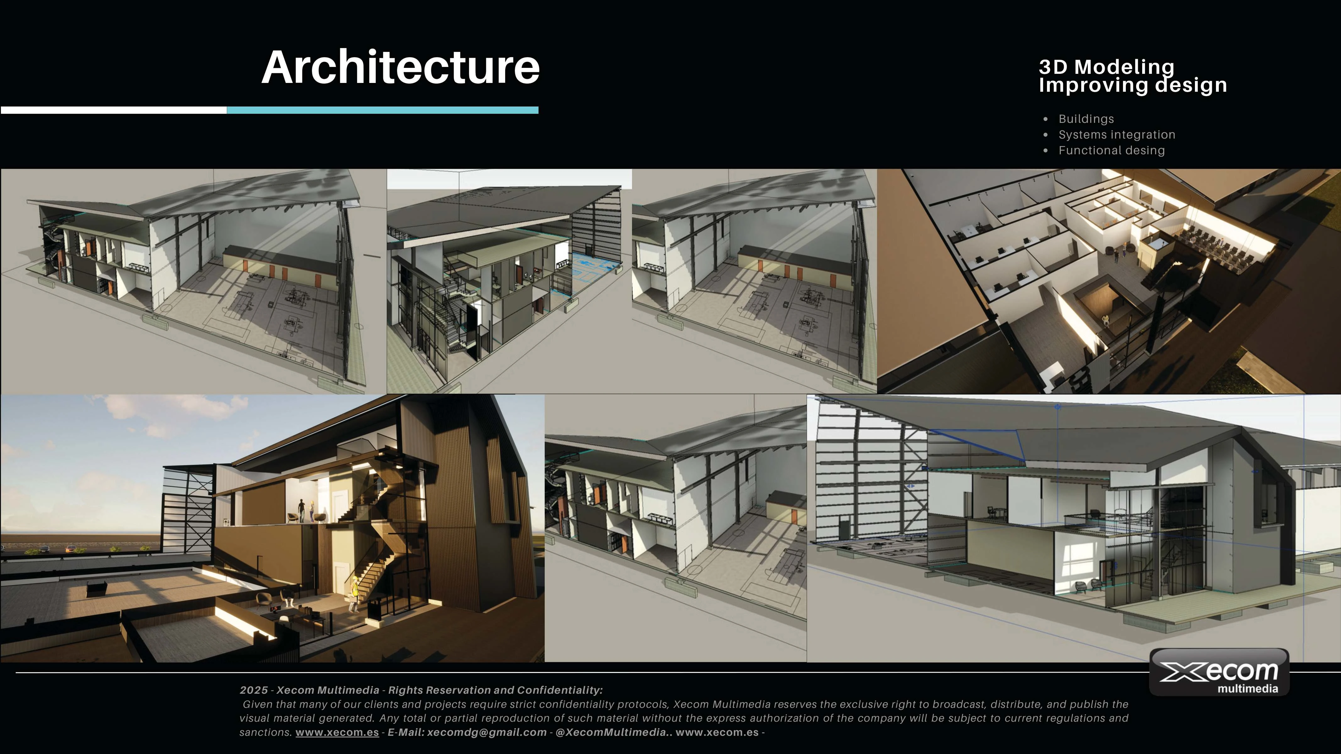 3D, renders, BIM, VR/AR, and simulation for architecture and engineering. Development of visual apps, brochures, and multimedia that communicate, sell projects.