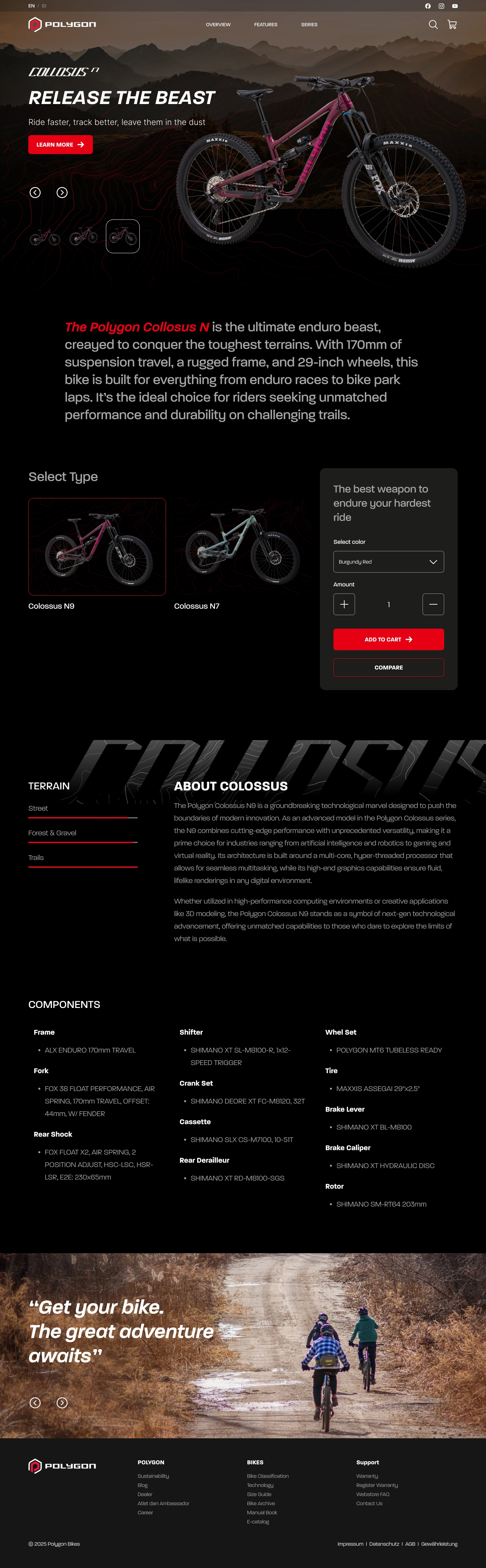 Mountain biking is all about grit, dirt, and high performance. I wanted to bring that same "aggressive" energy to the web experience for the Polygon Colossus N.