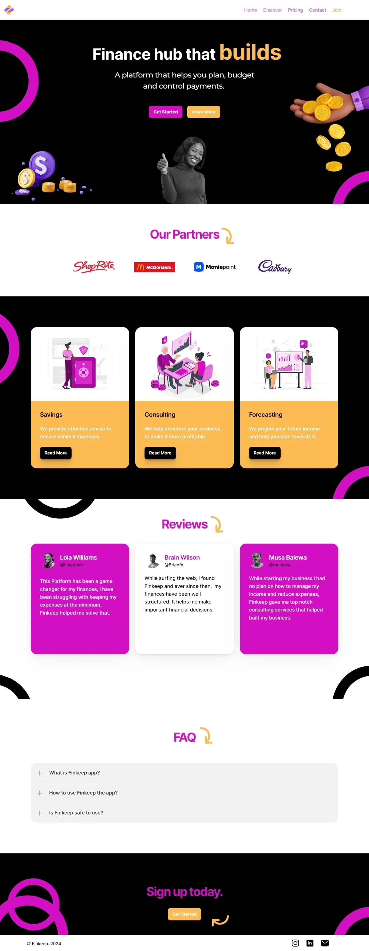 Designed a unique finance website for Finkeep with Figma and deployed on Framer for a user friendly Website output.