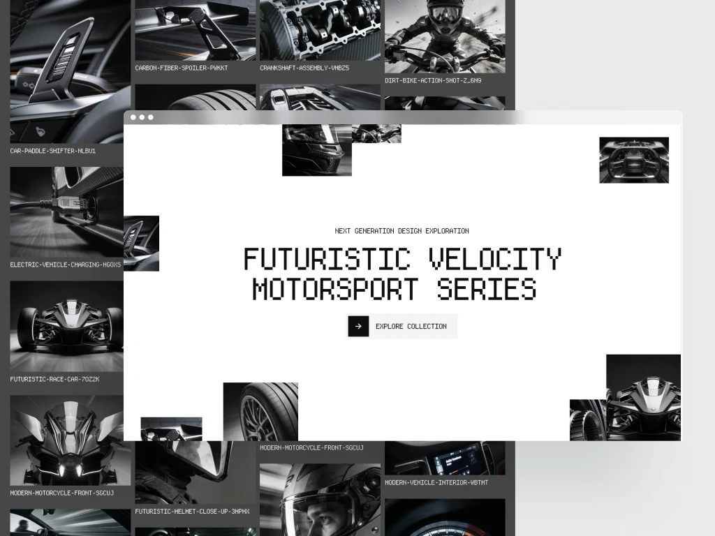 A visual study focused on the future of motorsport design. The project explores how supercars, superbikes, racing gear, and mechanical components might look in a next generation performance world shaped by advanced engineering, aerodynamics, and machine precision.