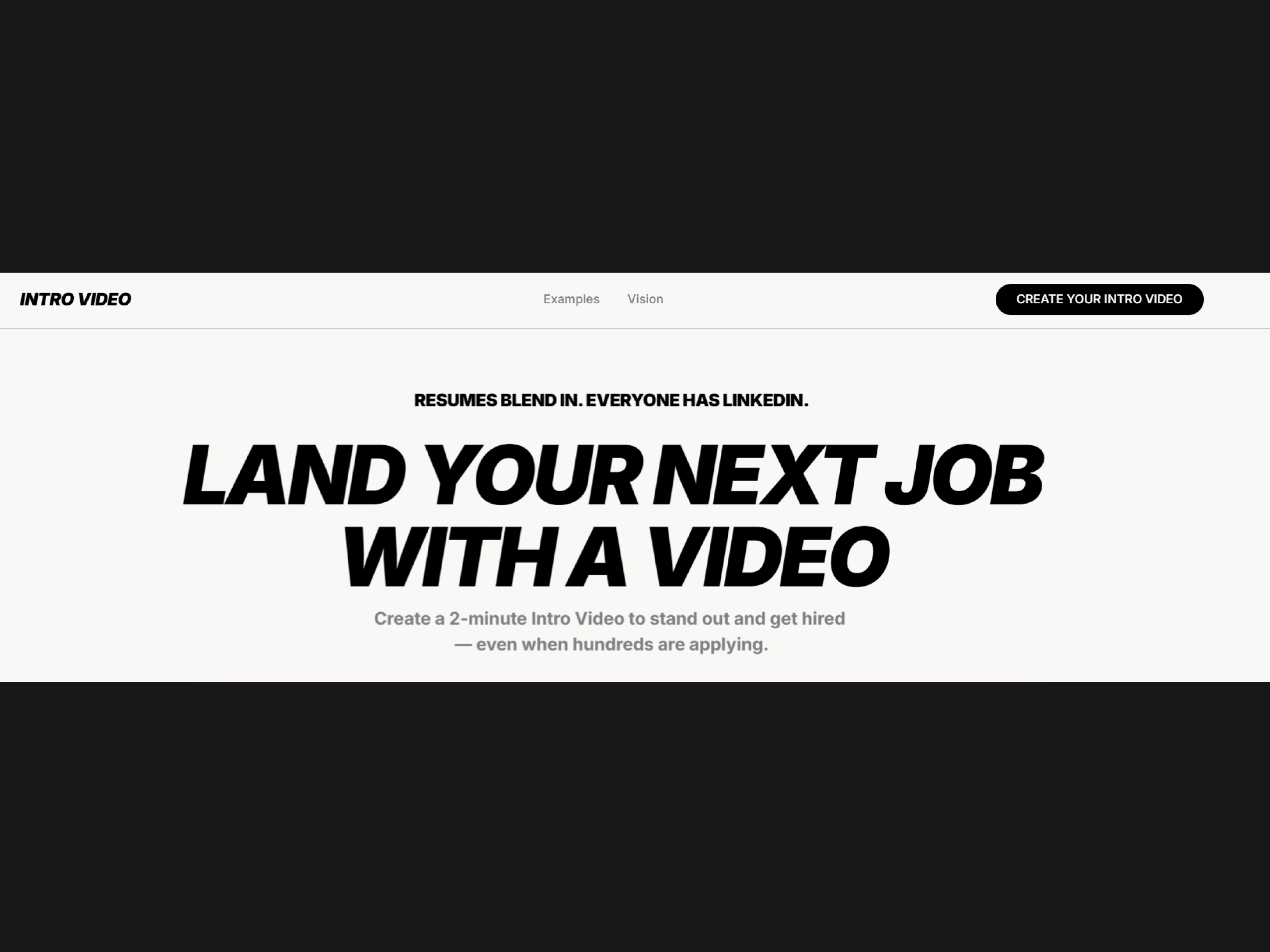 I worked closely with a founder to launch his new business idea. Intro Video is a personalized website that helps bold jobseekers stand out online.
