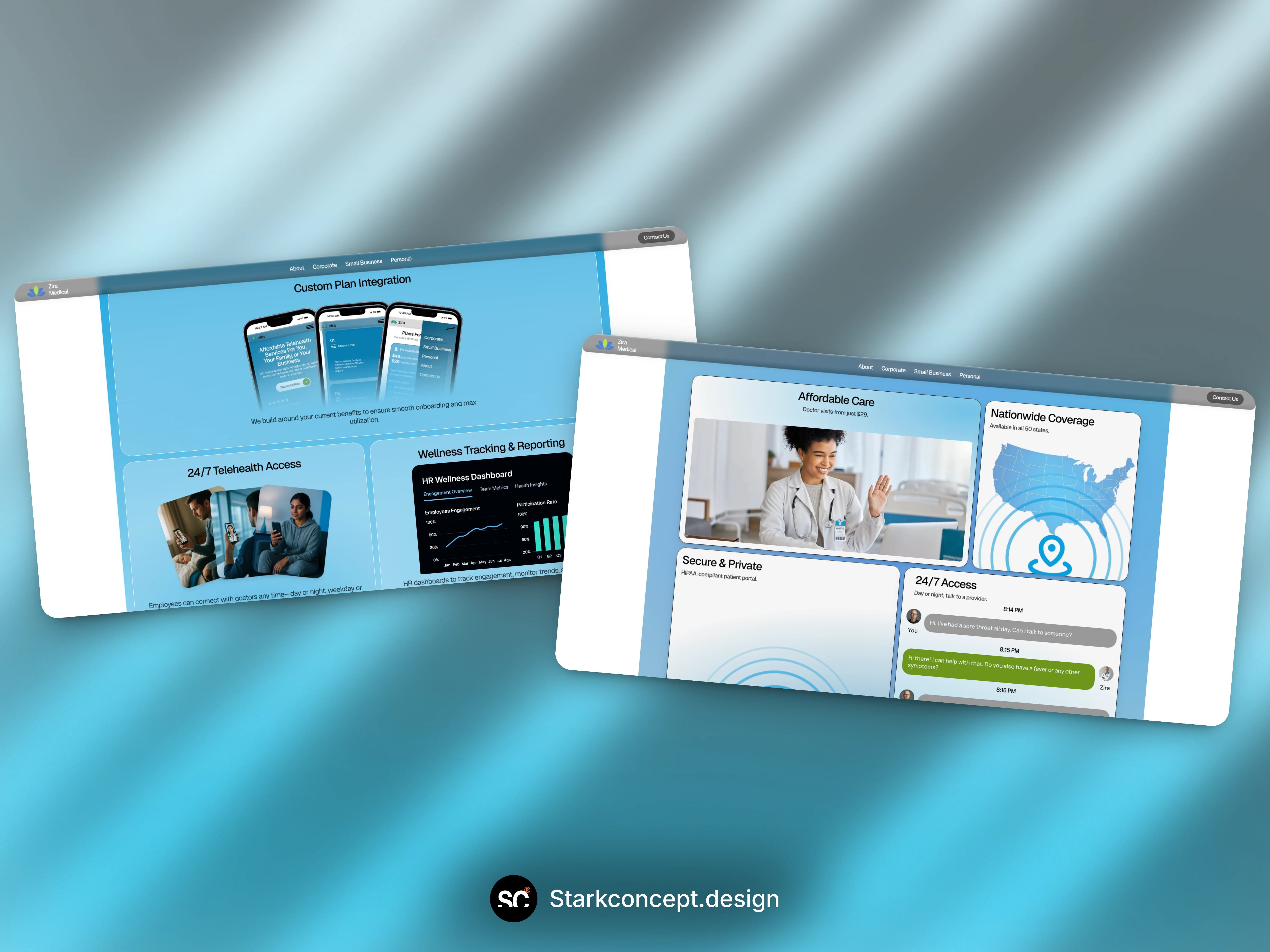 A tele health service business came up to me wanting a modern, minimalist with a splash of glassmorphism website.