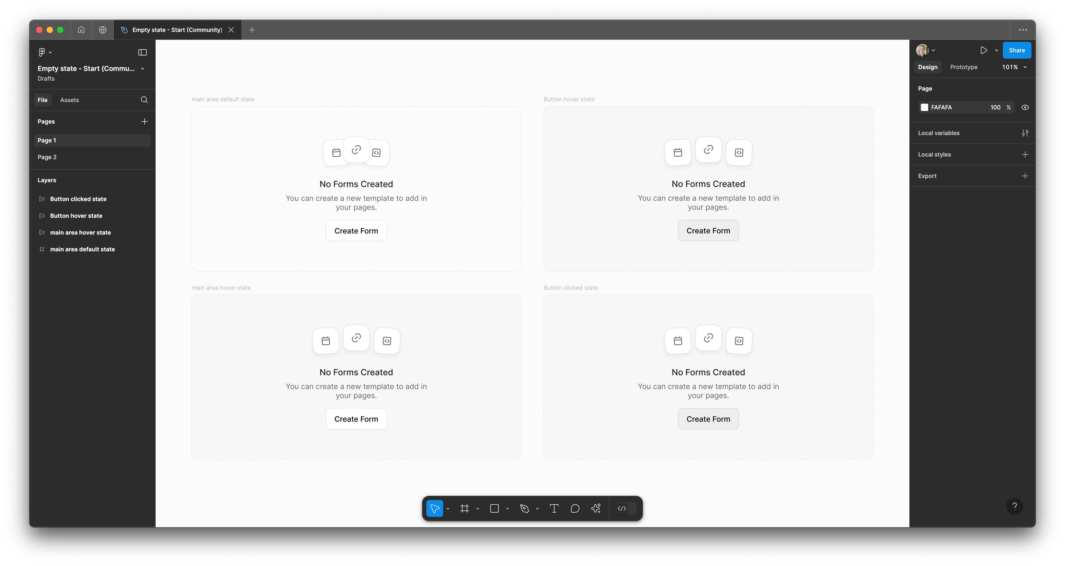 Empty state prototype with hover states