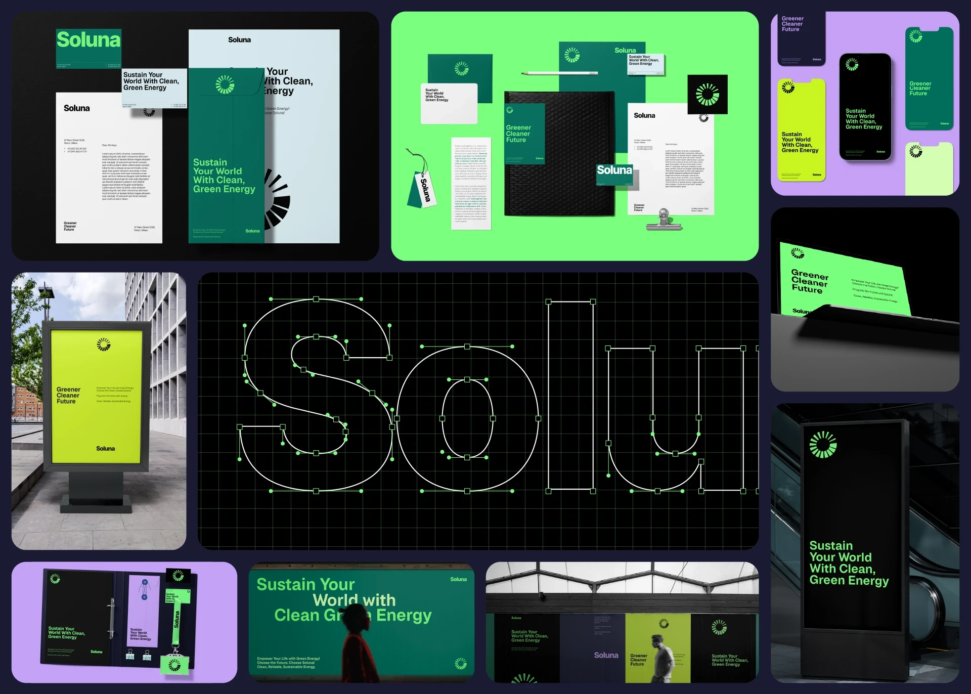 3) Identity System for Different Channels: I created a system that could be used in various ways to connect Soluna with their customers and show their brand's values.