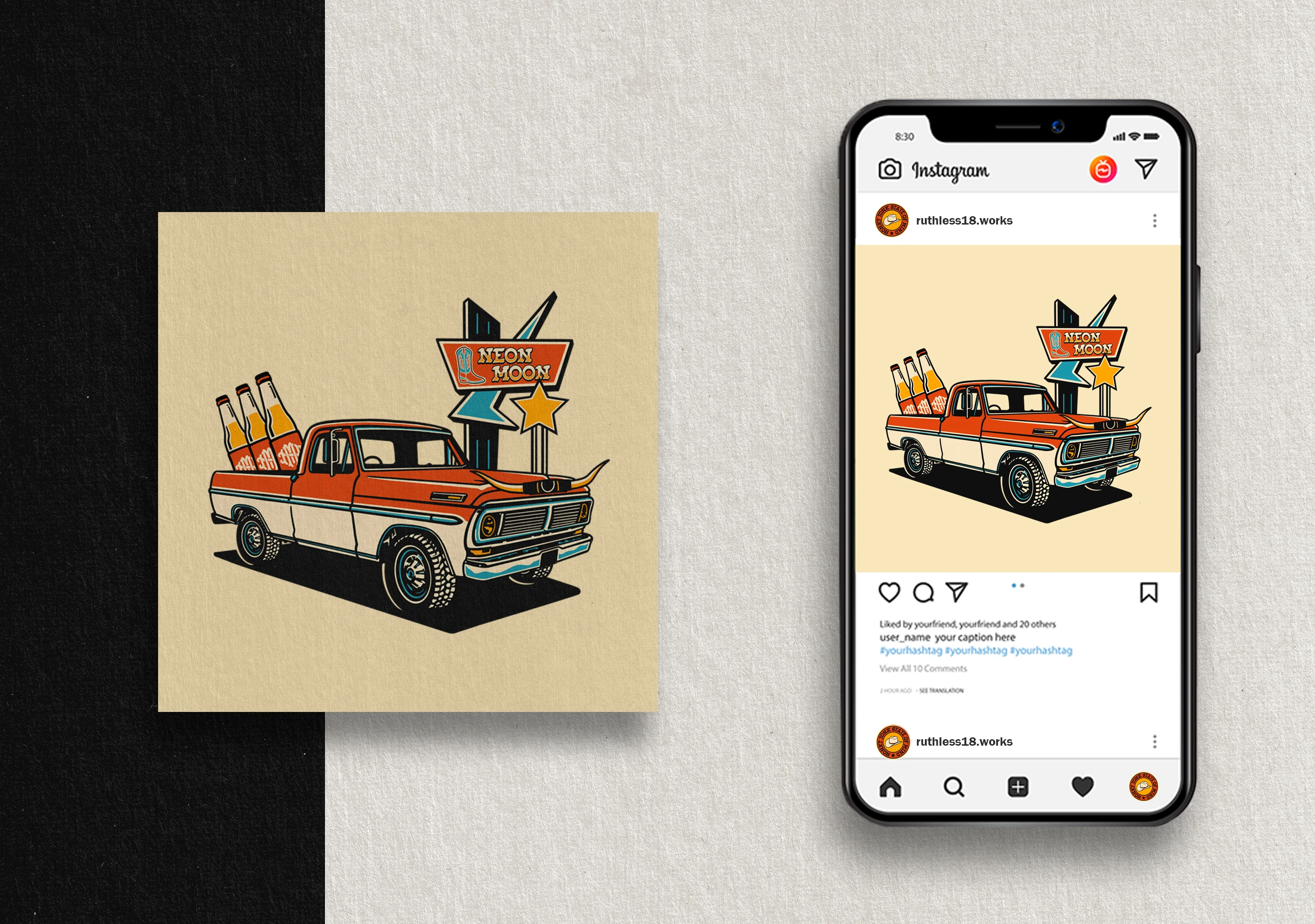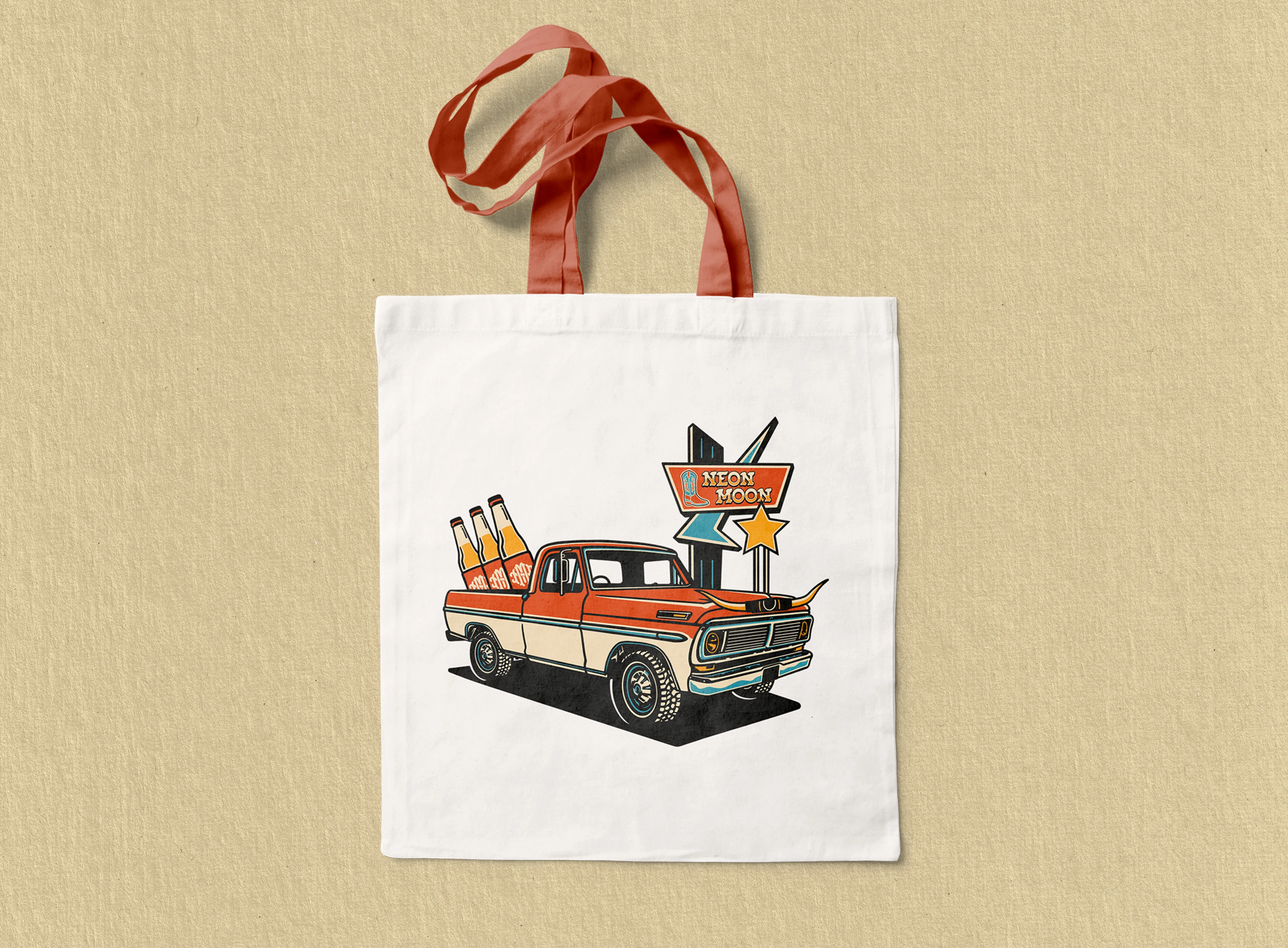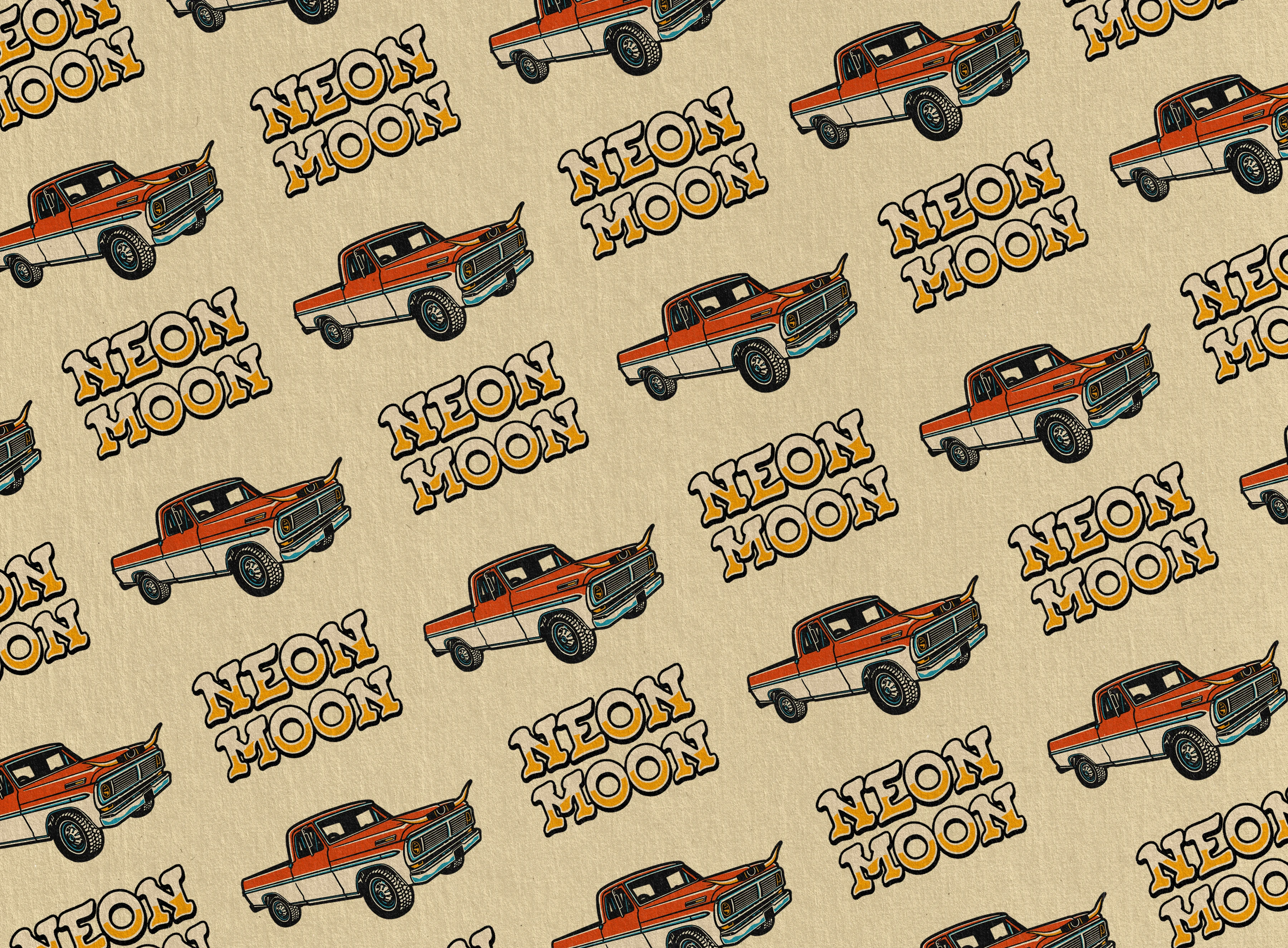 Branding for Neon Moon, blending western charm with retro flair. Bold illustrations, classic typography, and nostalgic colors evoke a true honky tonk spirit.