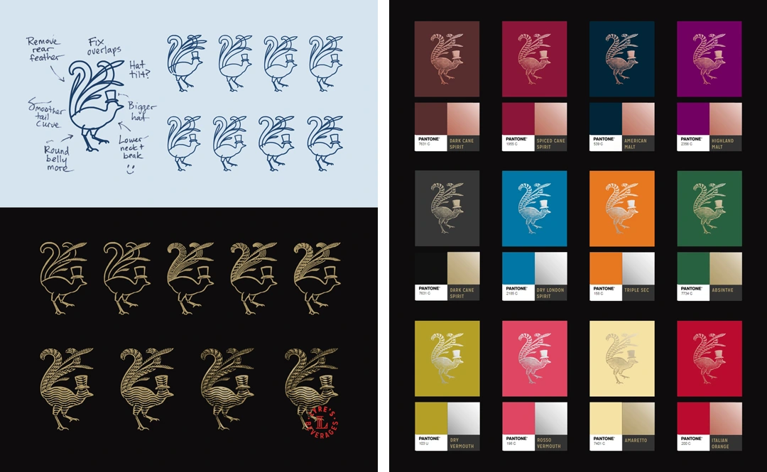 The lyrebird, famous for mimicking the calls and songs it hears, is the perfect emblem for a brand that re-imagines timeless classics in a new form. I created the lyrebird logo and illustrations, bringing a sense of character to every pour.