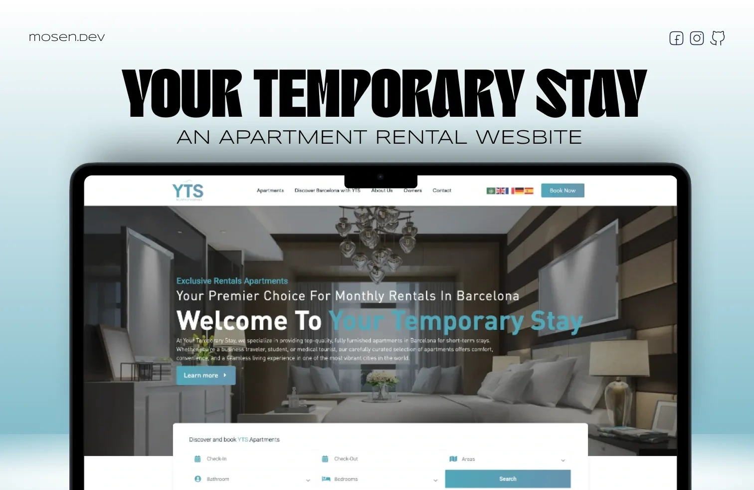 Your Temporary Stay is an apartment booking platform that helps travelers and remote workers find and rent fully furnished apartments in Barcelona, Spain. The website was designed to provide a smooth user experience for browsing listings, checking availability, and making bookings directly online.