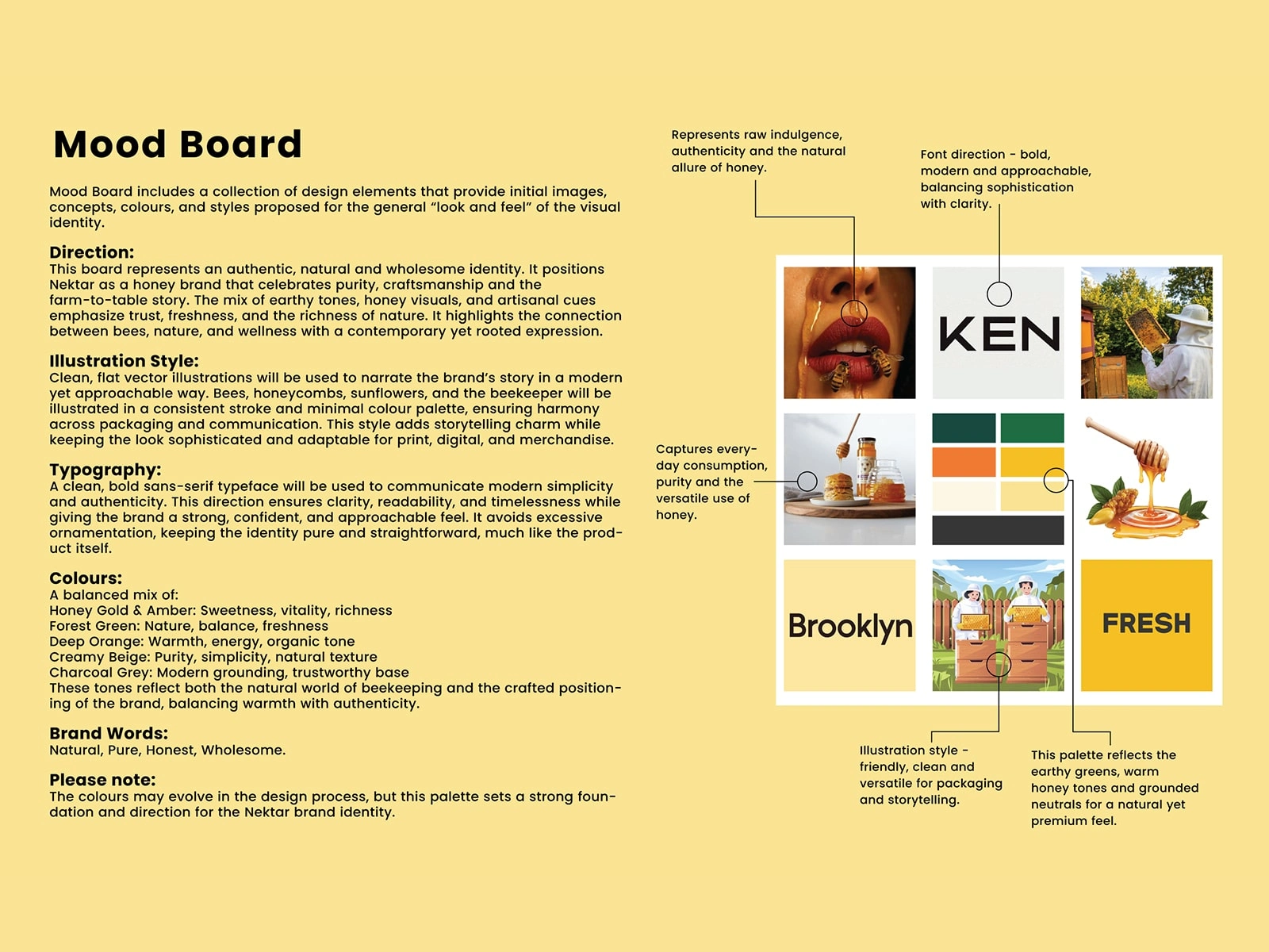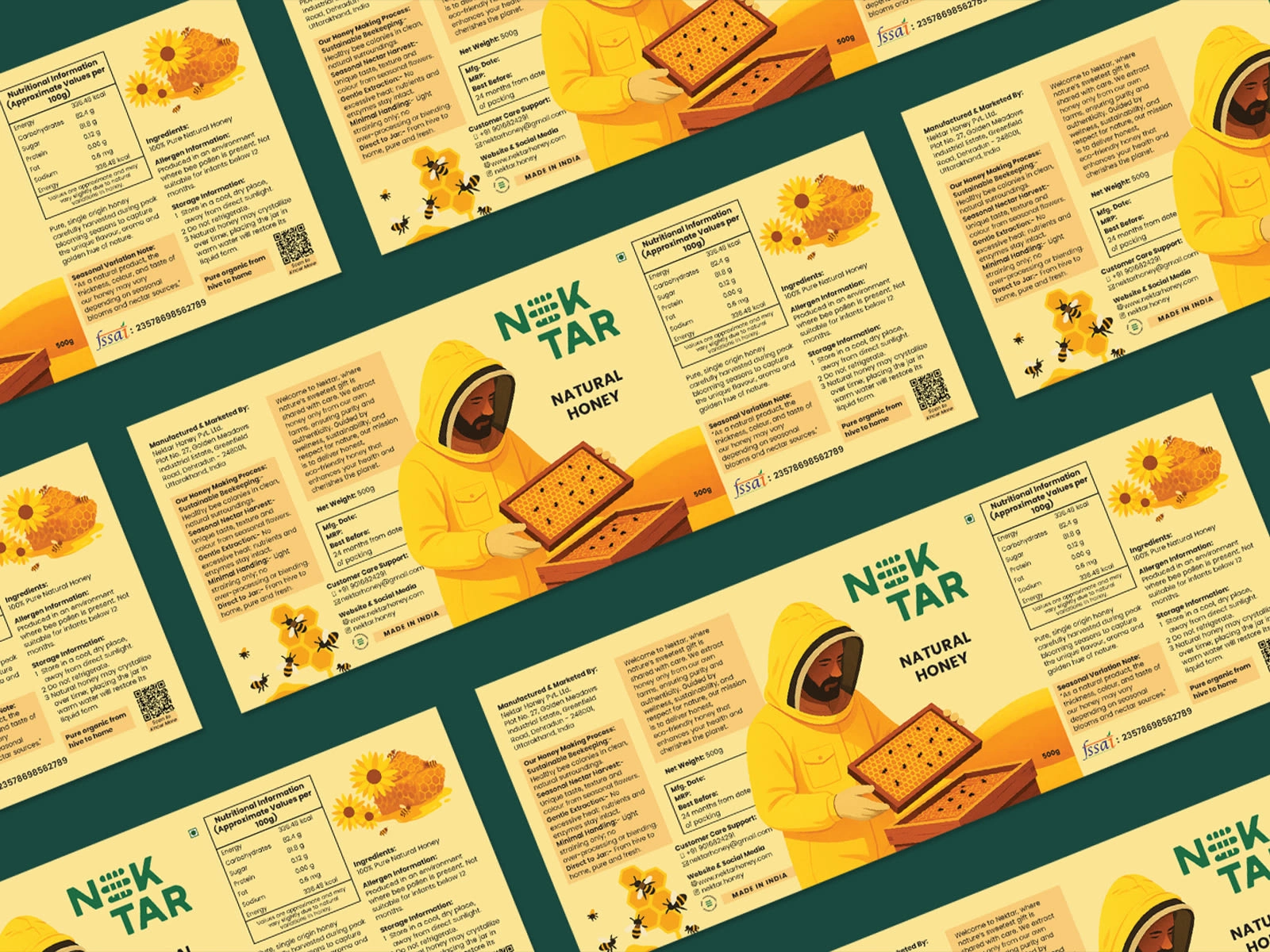 Our vision was to position Nektar as a trusted, contemporary honey brand, bridging the honesty of nature with modern design sensibility. The identity extends across packaging, retail and digital platforms, creating a seamless, elevated honey brand experience that feels tactile, authentic and luxurious.