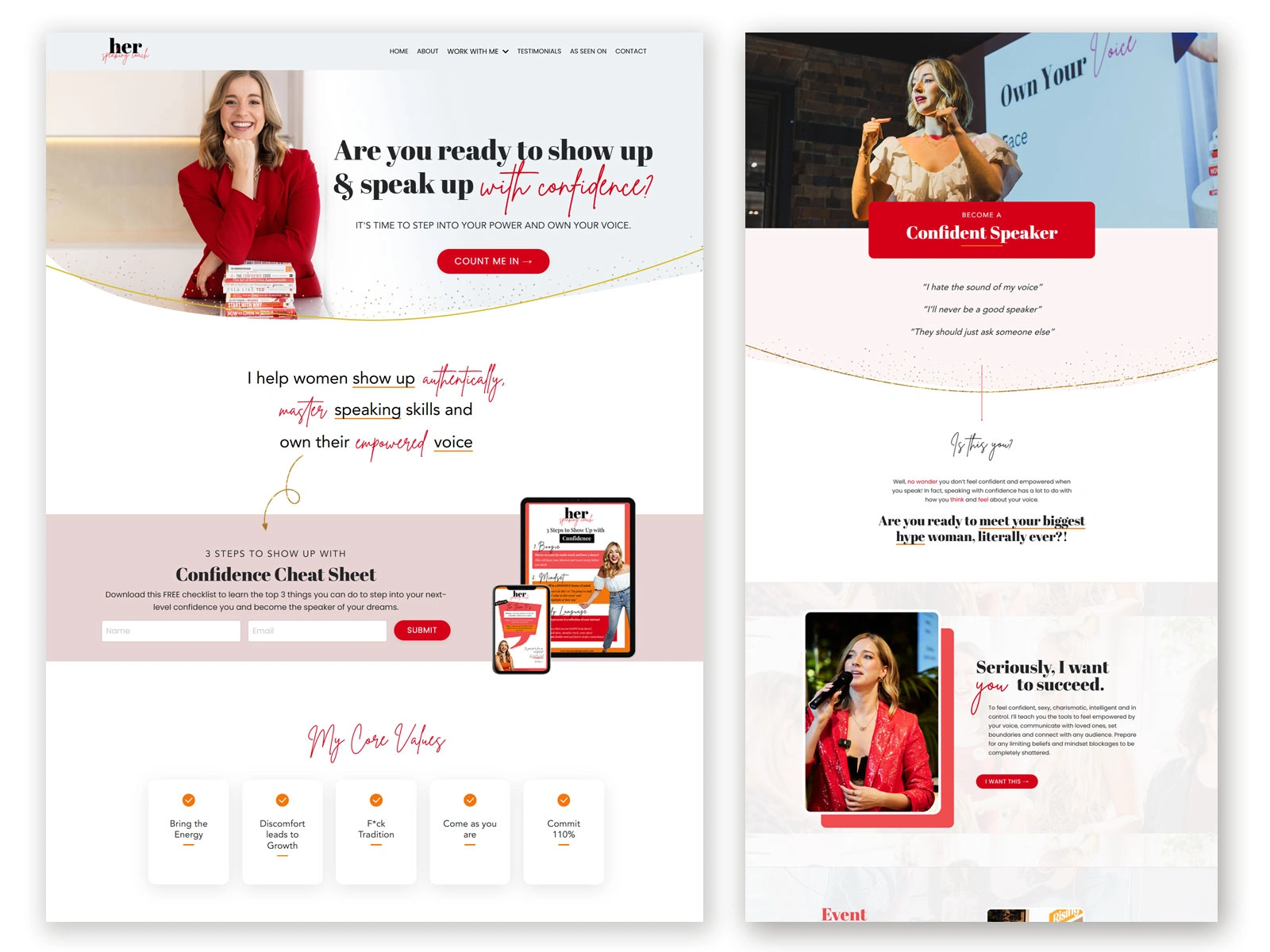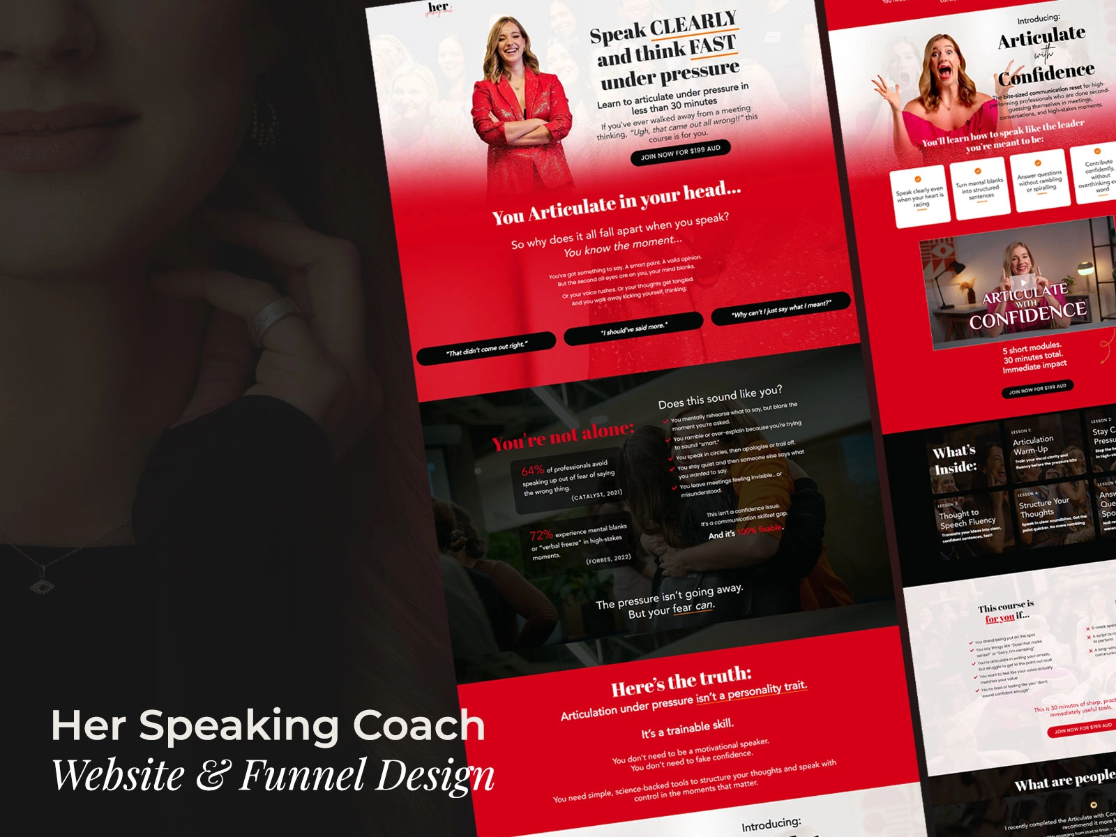 This project involved a complete migration of Annelise’s website to Kajabi — not just a technical transfer, but a strategic redesign. The goal was to preserve her established brand identity while elevating it with a refined, modern, and feminine aesthetic that better reflects her authority and warmth as a speaking coach.