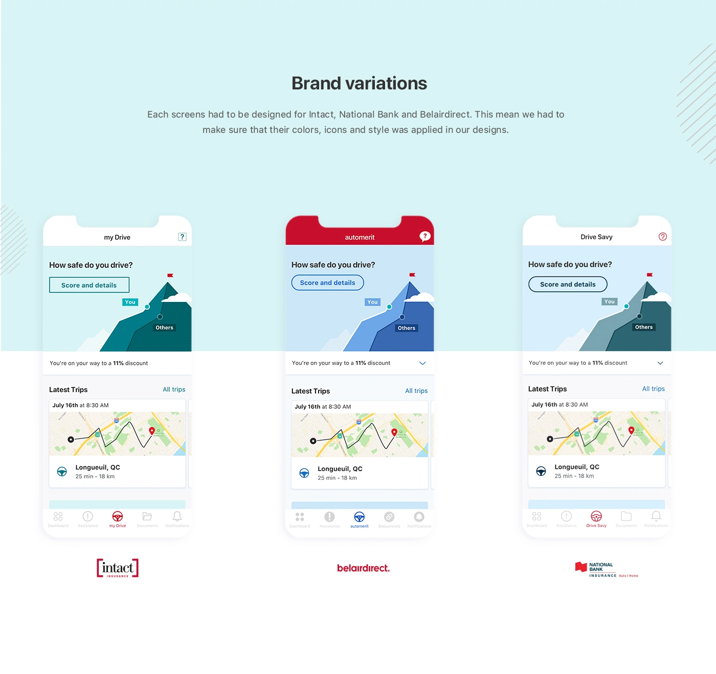 Re-Design of the UBI portion within Intact Insurance, Belairdirect and National Bank Insurance apps.
