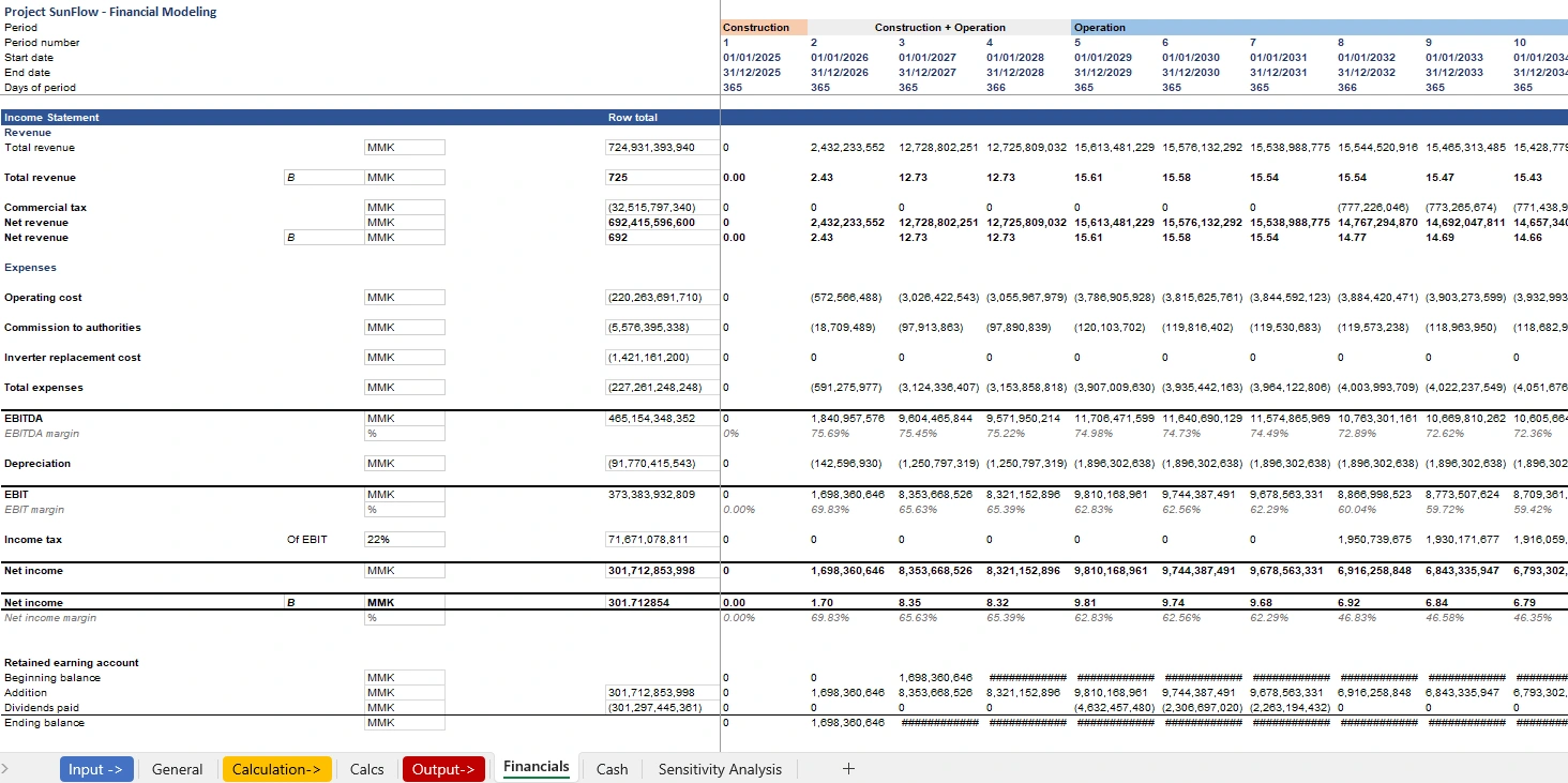 Provided detailed financial projections and viability analysis for a 30-year hybrid power plant concession.