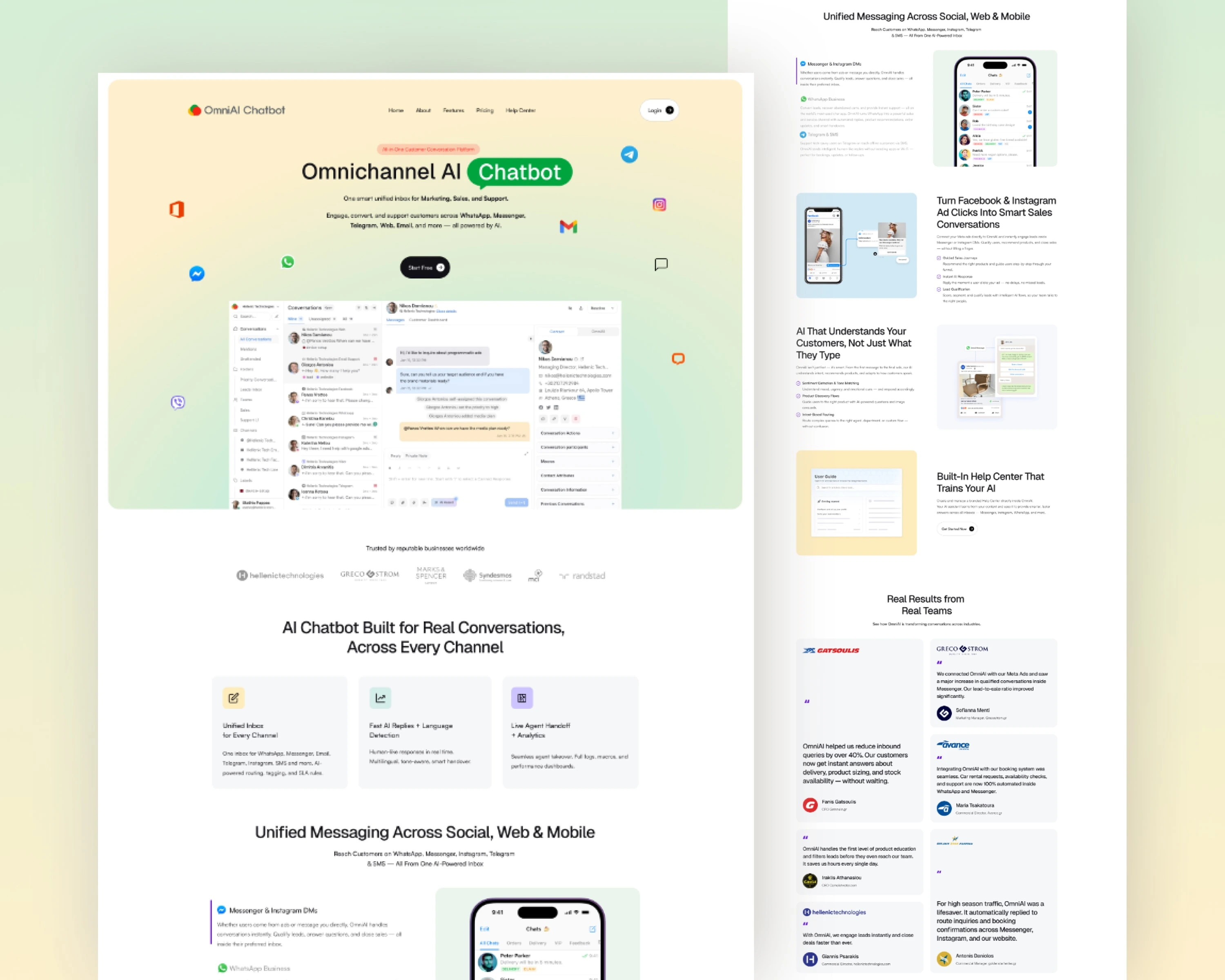 This is a website I designed and built for OmniAI, an AI-powered chatbot platform. The site explains how businesses can use OmniAI to automate customer conversations across channels like WhatsApp, Messenger, Instagram, and more. It also highlights key features and use cases so visitors understand the value right away