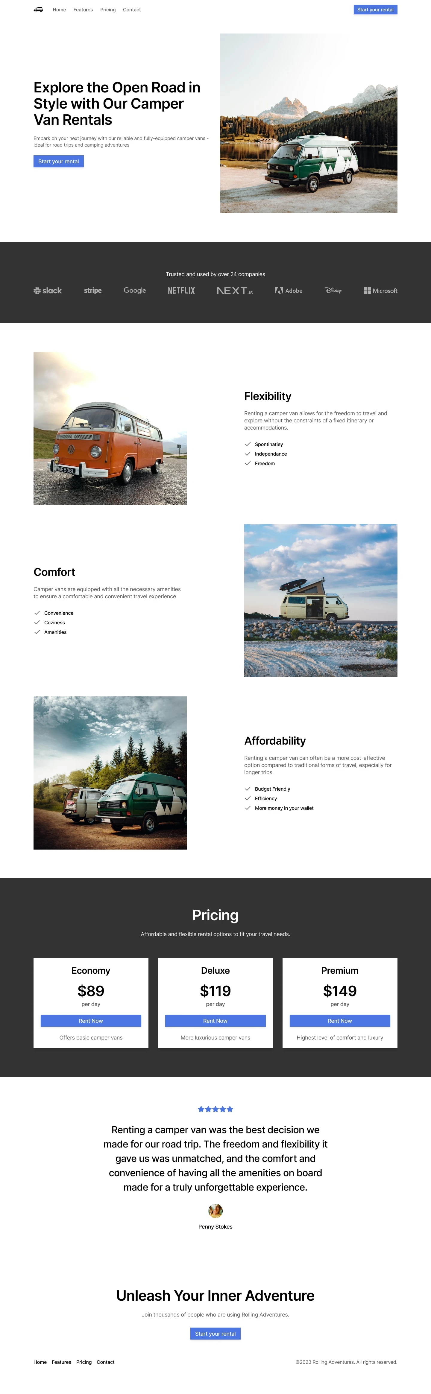 This website was designed with the traveler in mind, to provide a seamless and user-friendly experience for those seeking to rent a camper van.