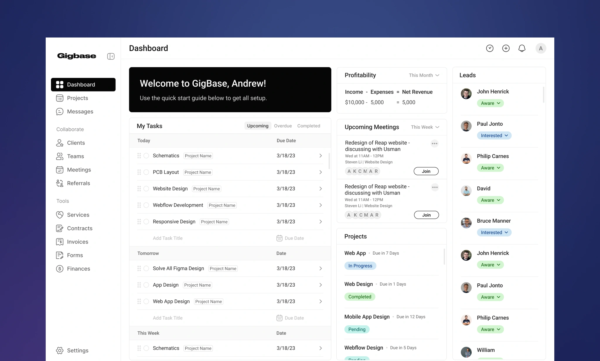 To build trust and professionalism, Gigbase required a cohesive and visually appealing design that was both functional and modern.