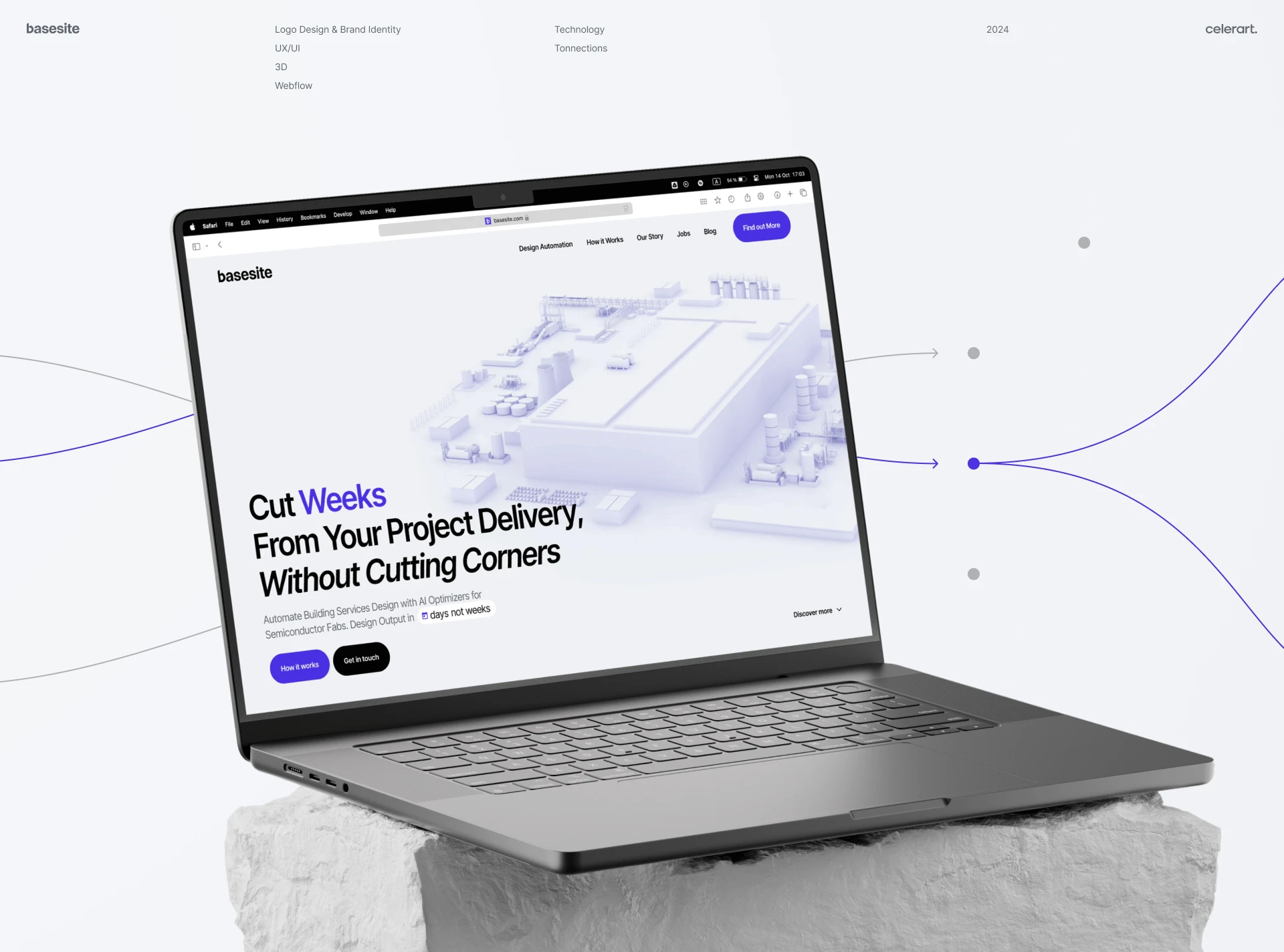 Created Basesite’s brand and Webflow site from scratch—logo, 3D, motion, and storytelling design—making complex AI fab software clear, engaging, and credible.