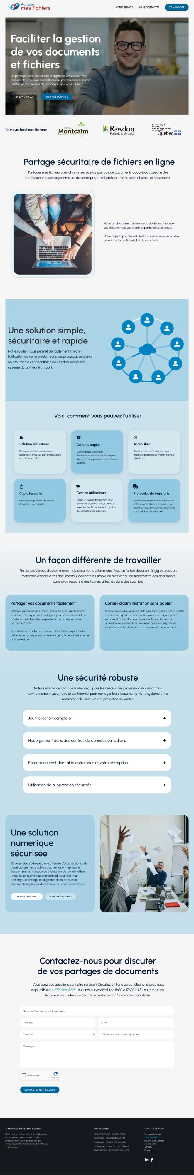 Designed and integrated a landing page for “Partager mes fichiers,” a Quebec-based SaaS platform for secure file sharing. Accessible only within Canada, the site acts as a digital storefront to showcase the service, highlight use cases for public institutions and businesses, and drive conversions.