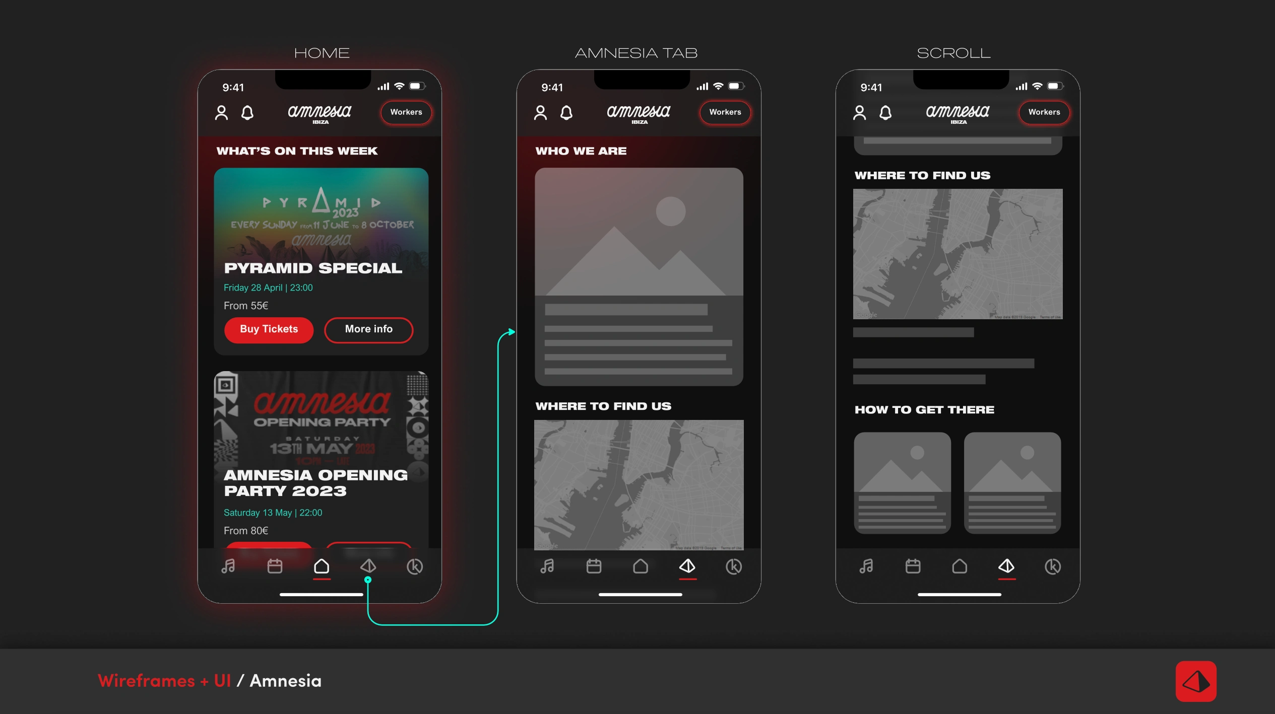 Designed and developed the UX/UI for Amnesia’s app from scratch, creating an intuitive, visually engaging experience aligned with the brand’s identity.