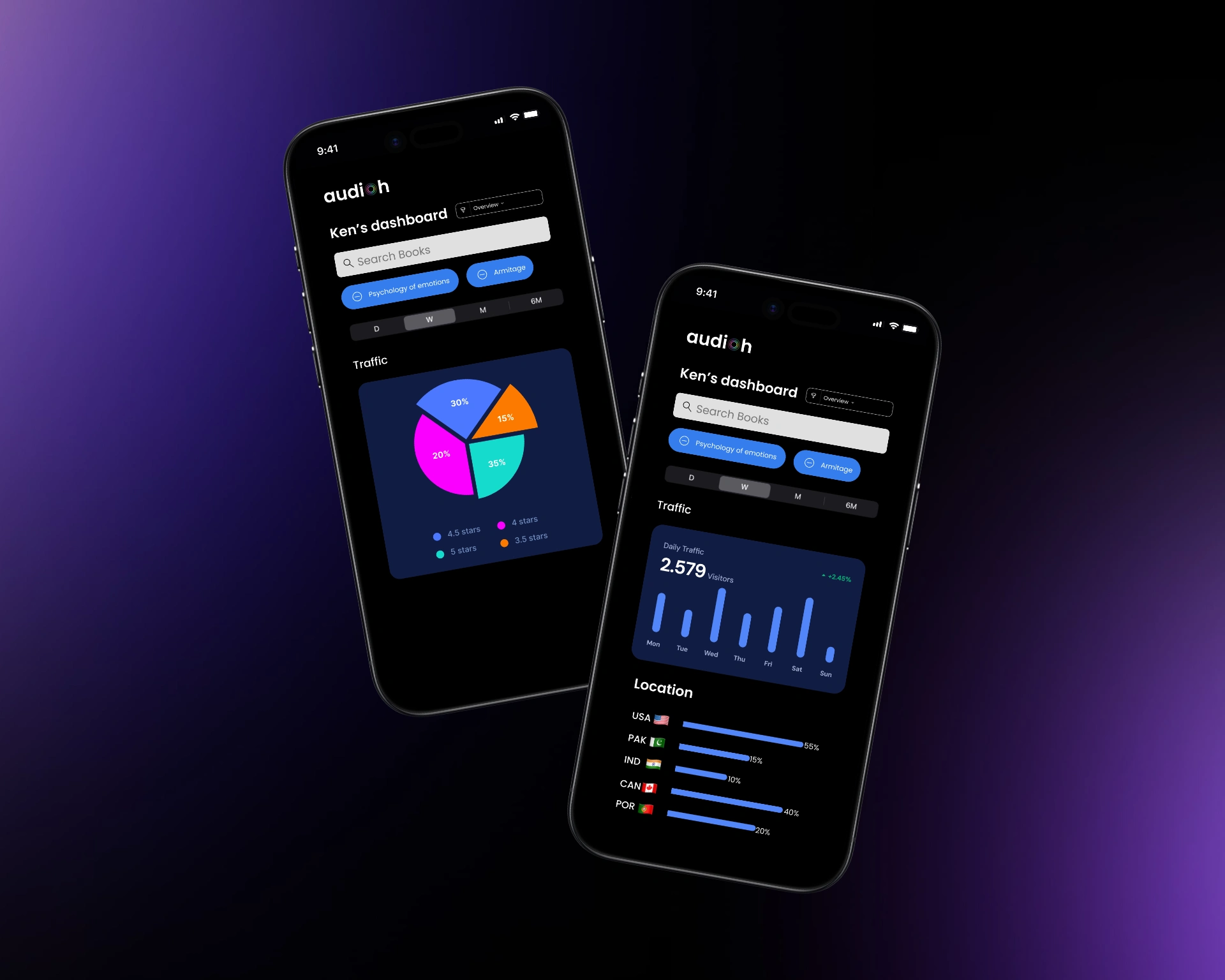 As Product Lead for Audioh, I spearheaded the end-to-end design and management of this unlimited audiobook platform, shaping a sleek, immersive user experience in a competitive $35 billion market. My work focused on intuitive navigation, personalized discovery features, and seamless playback controls that boosted user signups and engagement while streamlining internal processes for faster turnaround. By prioritizing user-centered enhancements and fostering team balance, I drove meaningful growth—delivering improved UX, higher retention, and scalable product decisions that positioned Audioh as a strong player in the audiobook space.