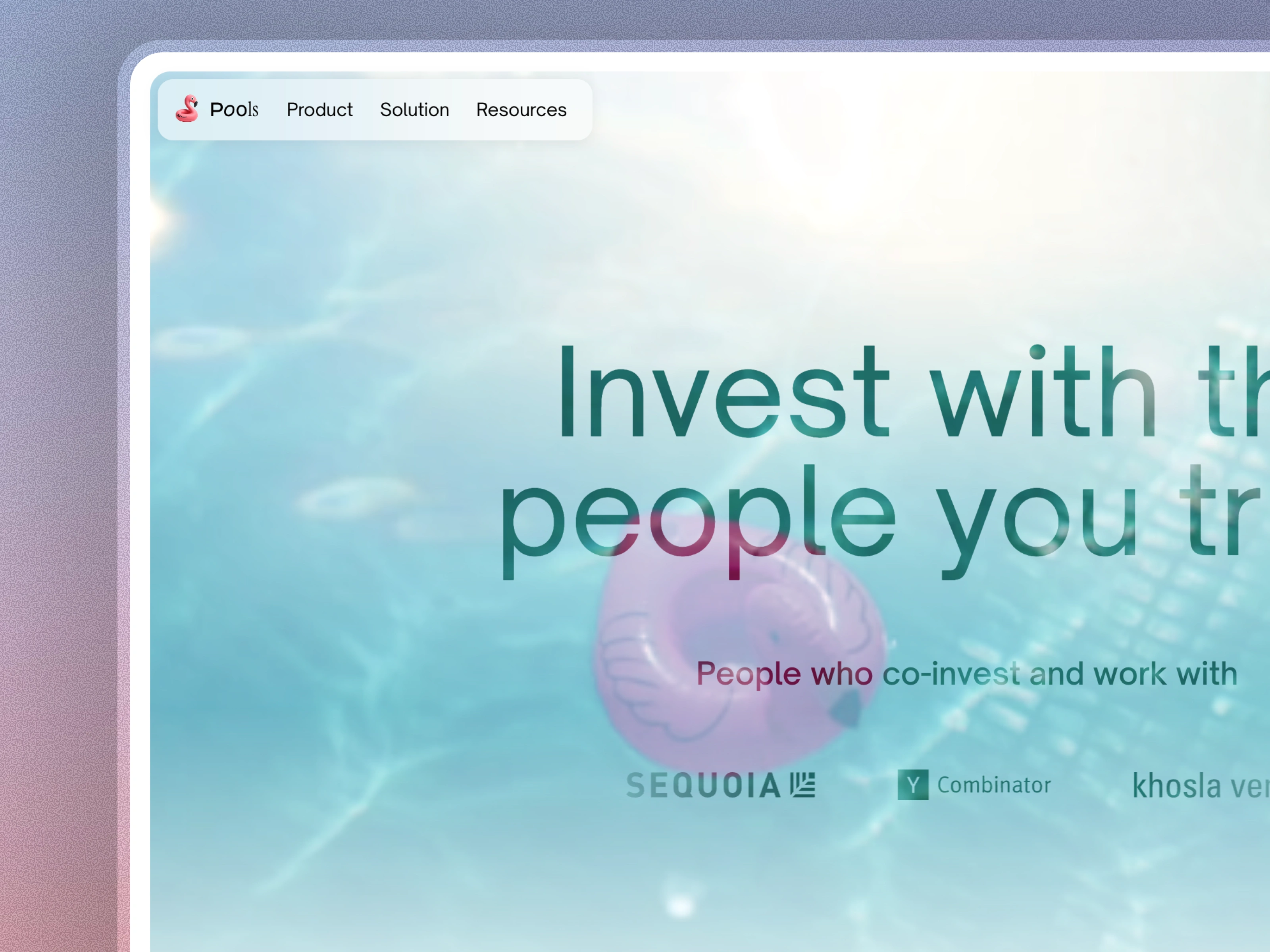 For Pools, a platform redefining private market co-investing, we created a website in Framer and brand identity that communicate access, structure, and collaboration. The site highlights how investors can syndicate deals with trusted peers, run SPVs in days, and delegate operations to AI-powered agents. With clear storytelling and structured flows—from sourcing to signing—Pools is positioned as the modern way to invest together: secure, compliant, and built around community.