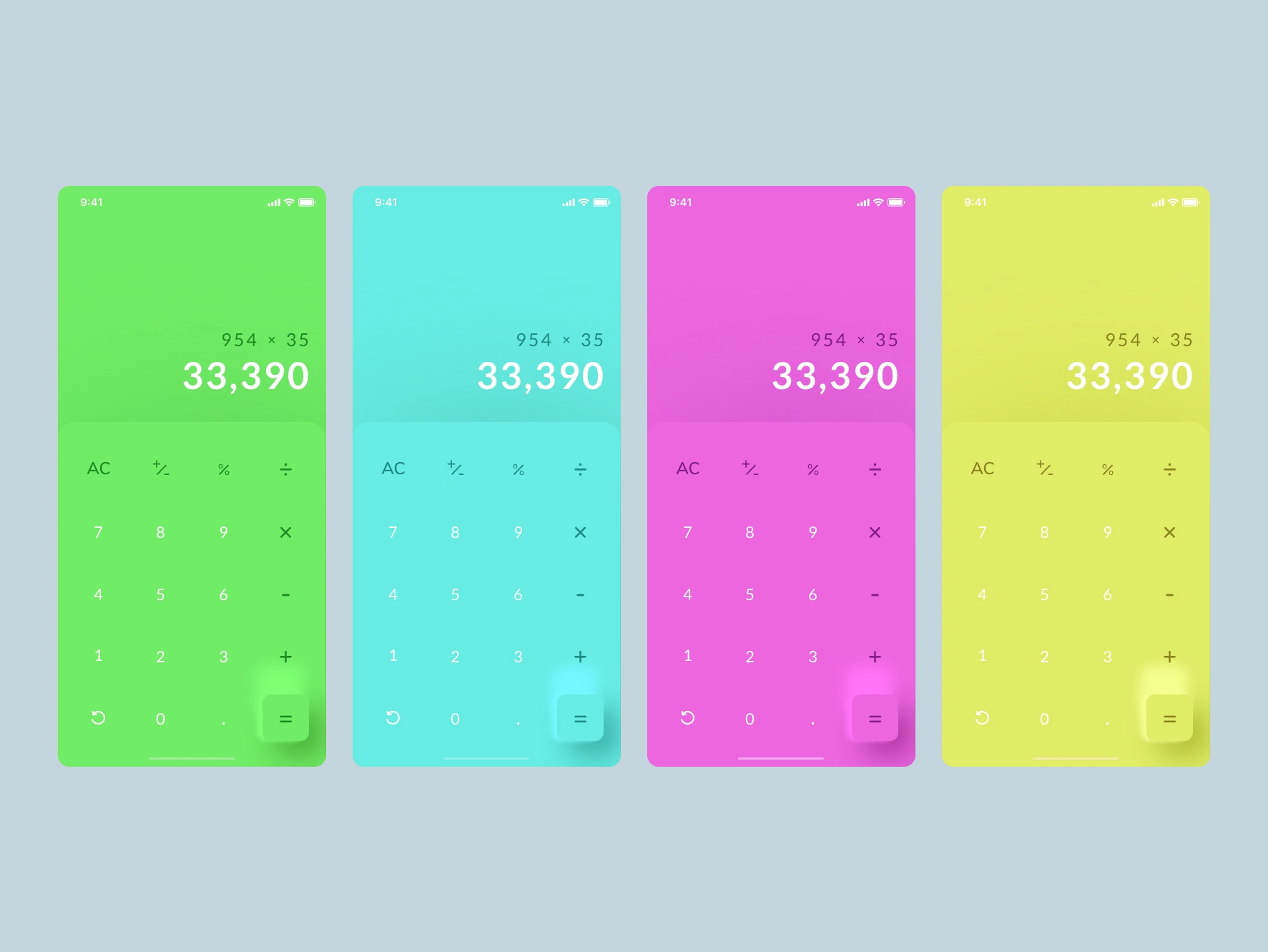 This concept explores a modern calculator app with customizable color themes. It’s a minimal tool with a surprising amount of visual personality.