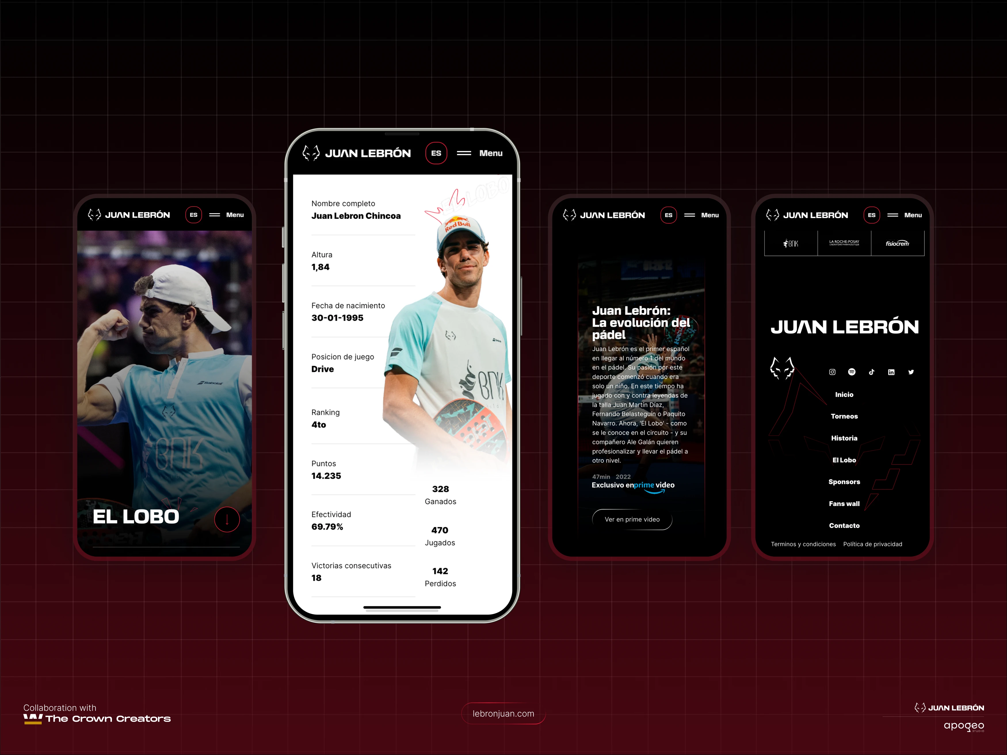 Dive into the world of Juan Lebrón with our latest creation at Apogeo Studio. We've crafted an online platform that's as dynamic and spirited as the sport itself. Get an up-close look at Juan's thrilling padel journey, enriched with hand-drawn animations and a vivid color palette. It's more than a website; it's a gateway to the heart of professional padel.
