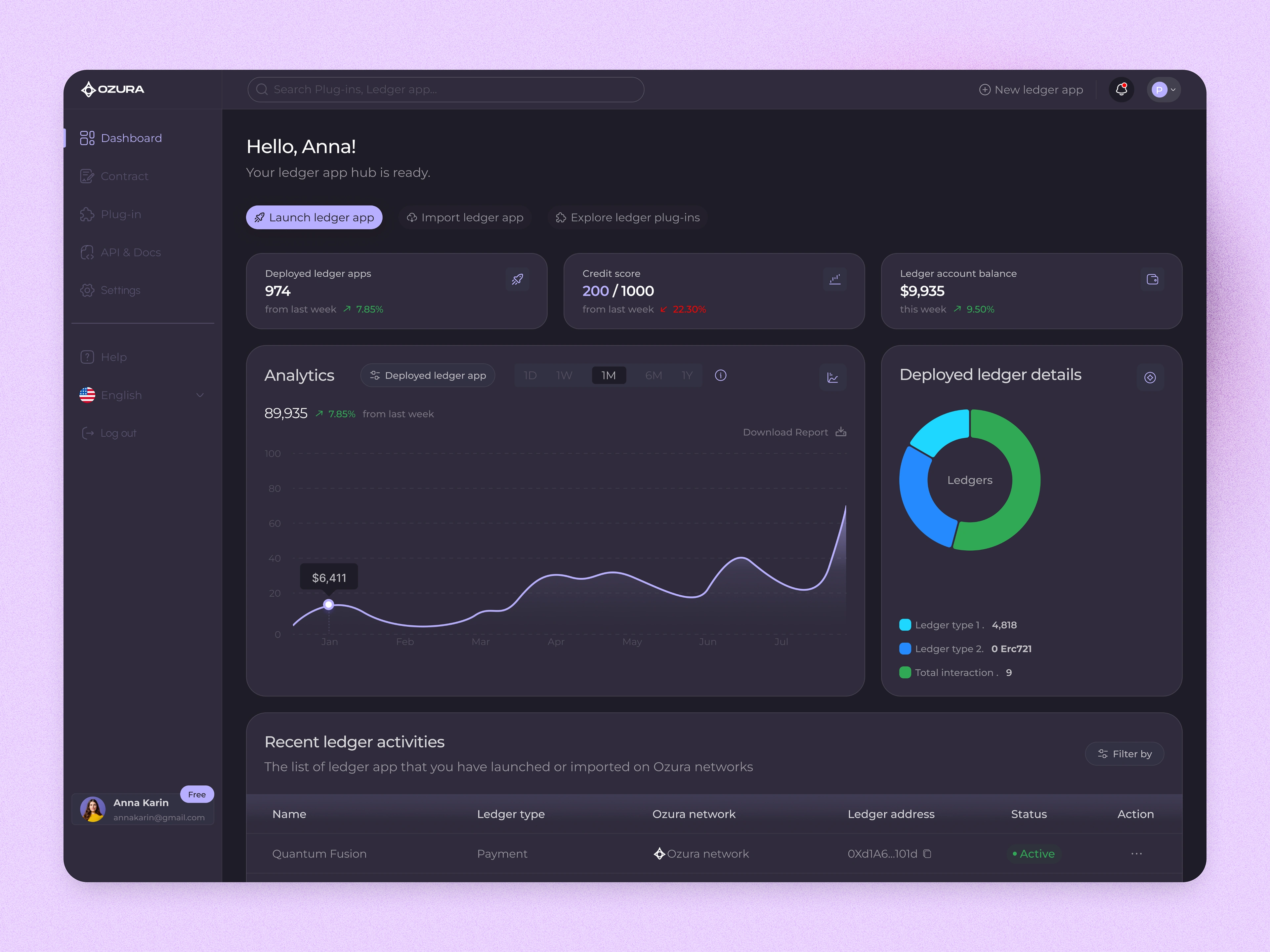 The Ozura Ledger Dashboard turns complex Web3 financial interactions into a streamlined, manageable system. It combines powerful backend capabilities with a front-end experience that’s clear, actionable, and visually intuitive.