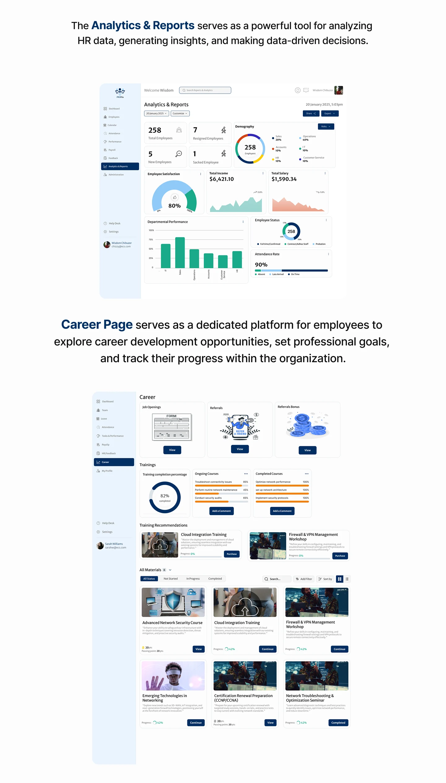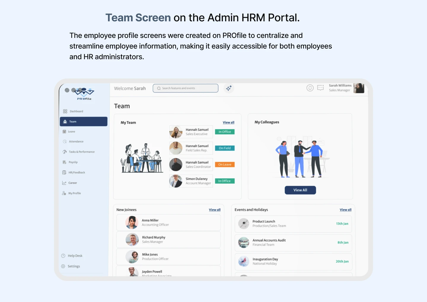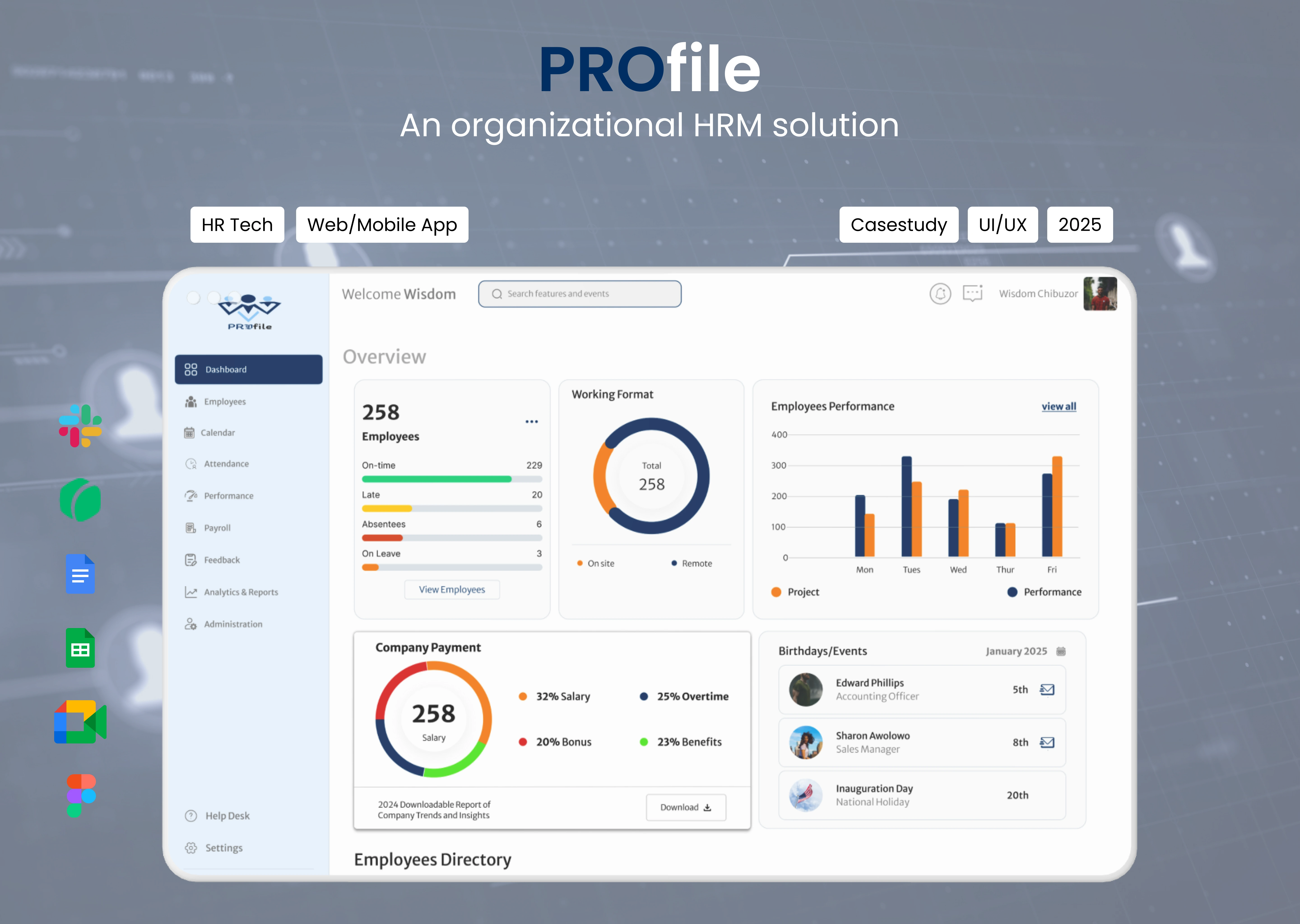 PROfile is an HRM and ESS portal that organizes information, tracks Performance, Attrition and Clock-in, for Employees, HRs and Business Owners