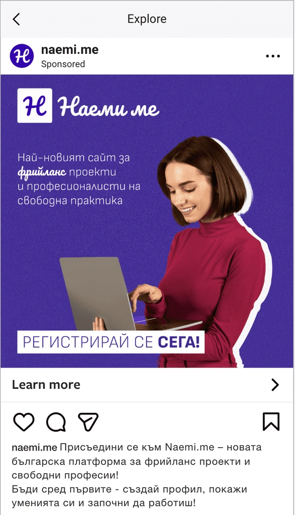 Naemi.me was the first of its kind in Bulgaria, there were no direct local references to draw inspiration from. Instead, we analyzed successful ad formats from established job platforms and