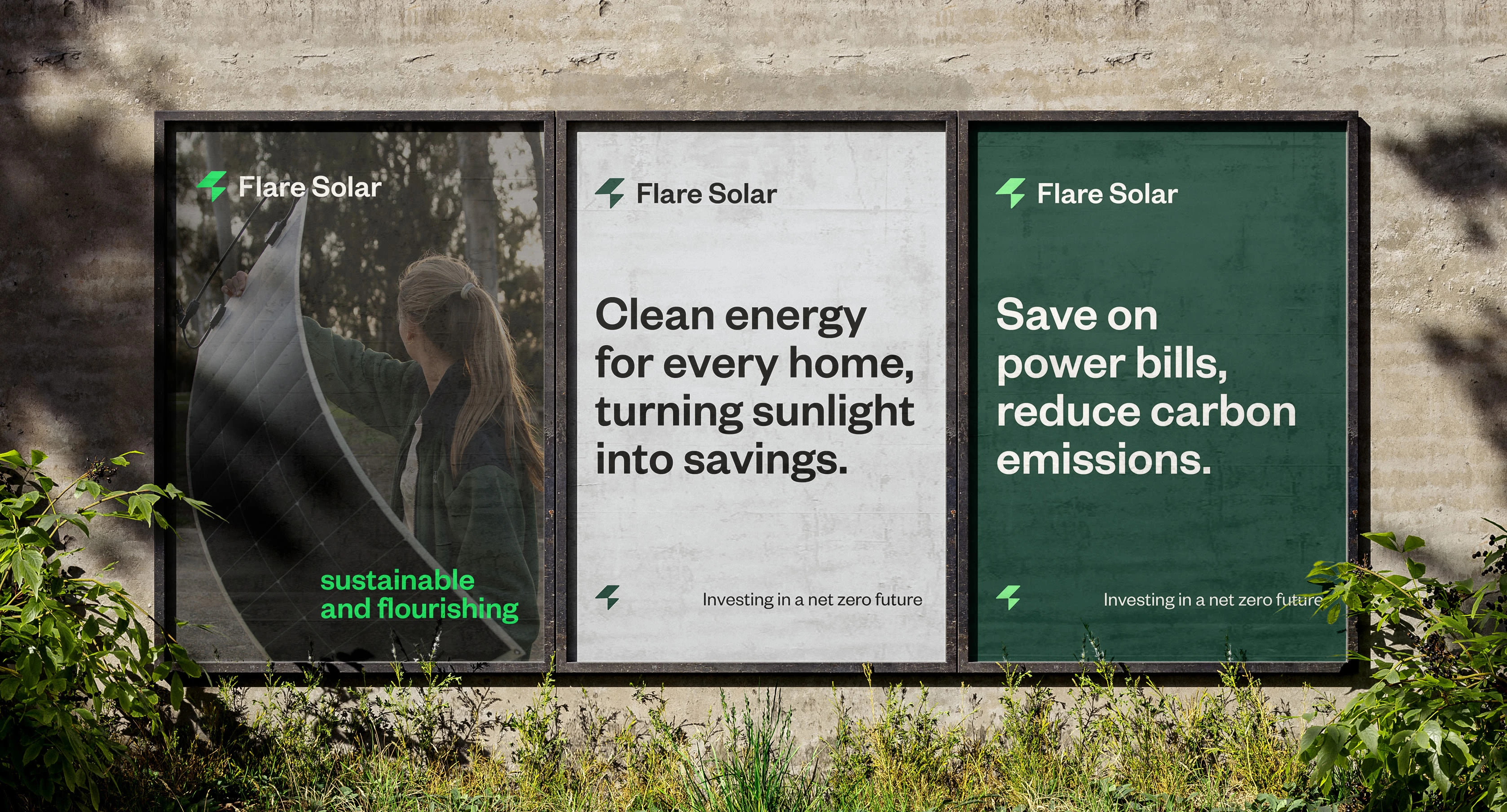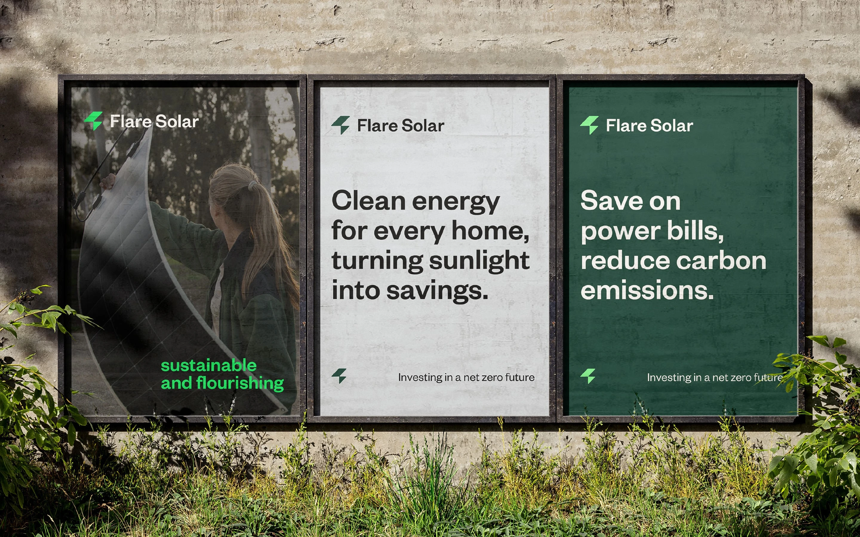 I approached the project as a complete branding exercise, starting with concept exploration around energy, movement, and impact. The goal was to distill Flare Solar’s mission into a simple but distinctive mark, then extend that idea into a flexible visual identity that could scale across digital platforms, marketing materials, and brand touchpoints.