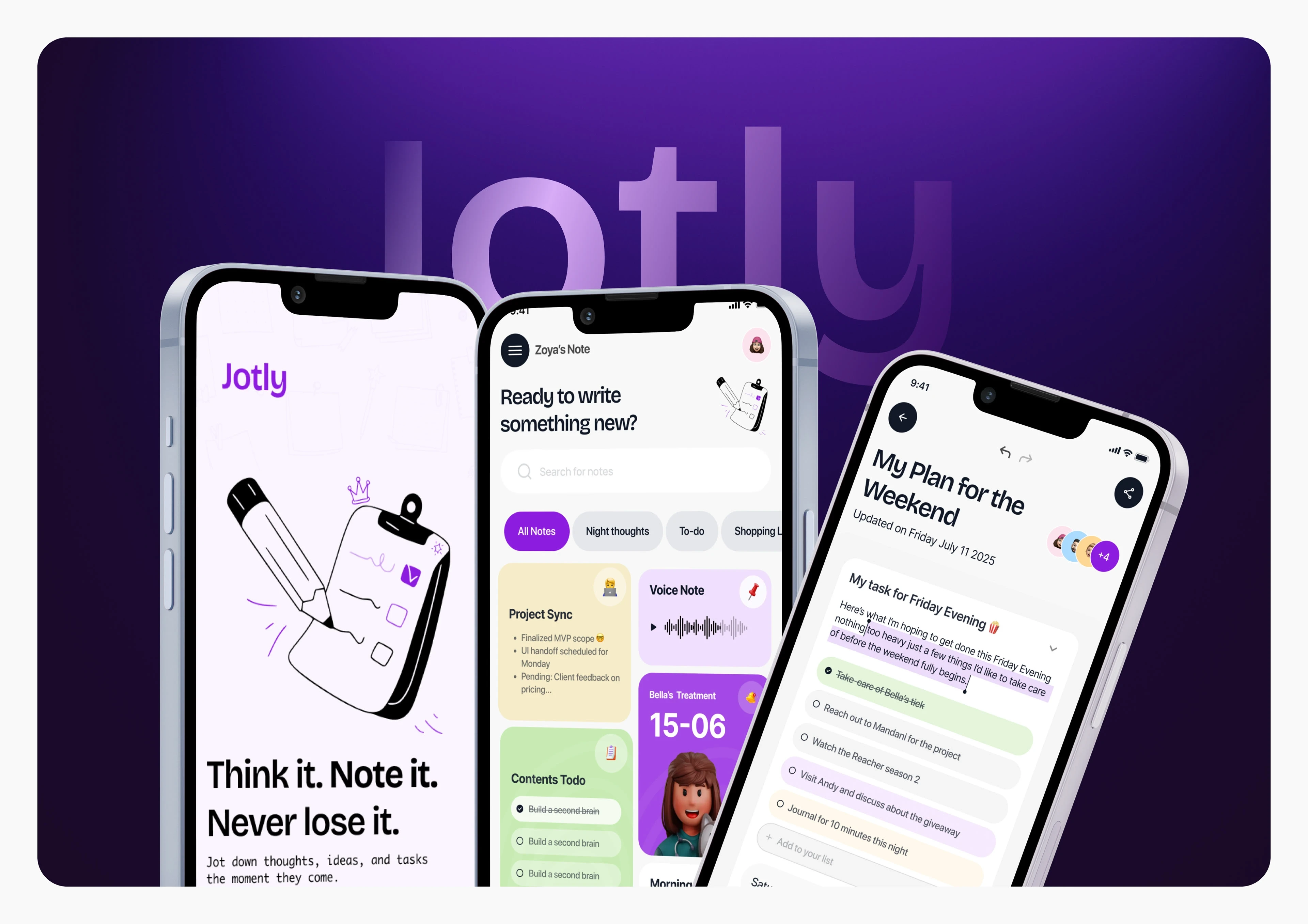 Jotly is a mobile-first note-taking app designed for thinkers, creators, and doers who need a simple yet powerful way to capture and organize ideas on the go.
