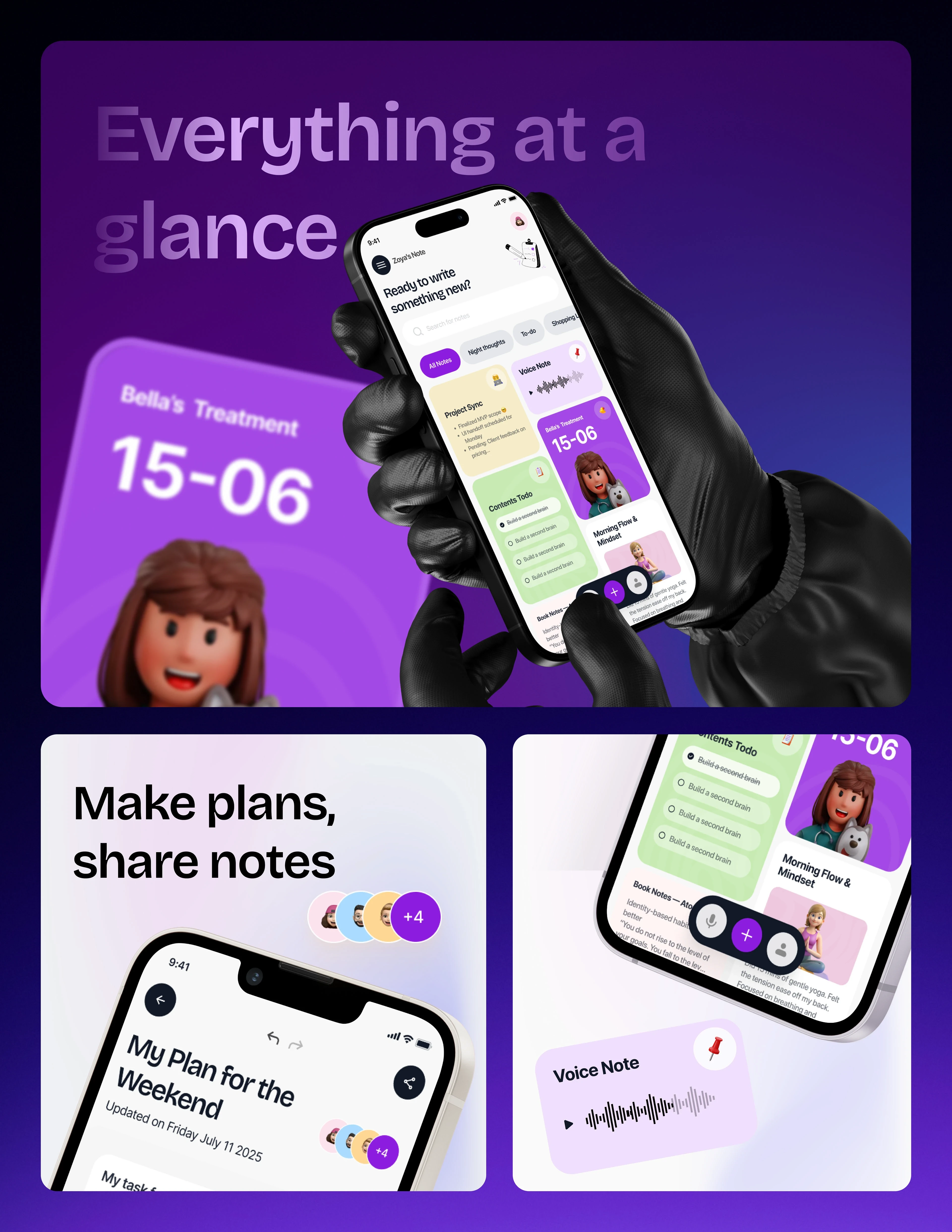 Quick Capture: One-tap notes with support for text, voice, and images.