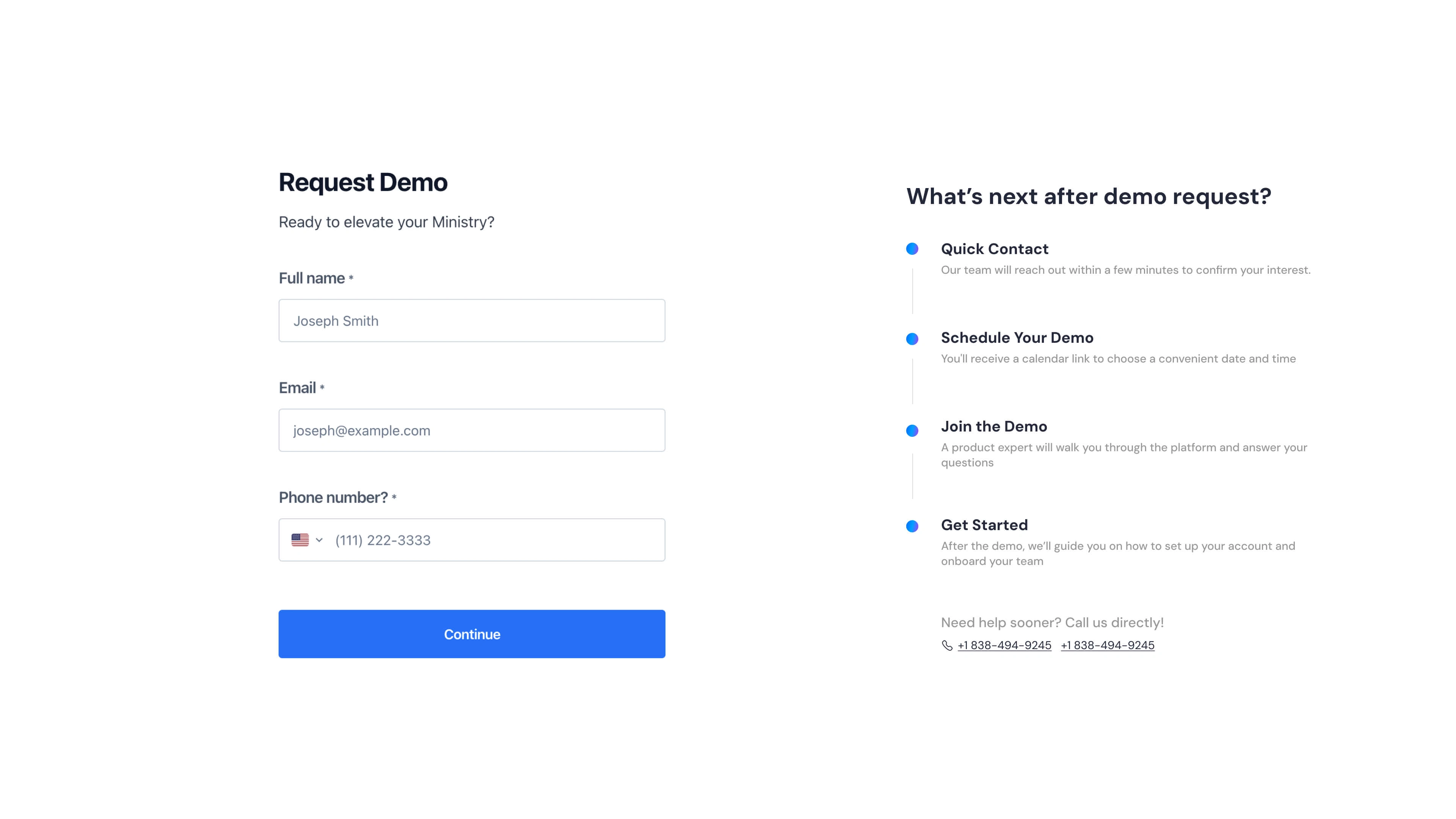 Since some churches are more tech-savvy than others, onboarding should be flexible: offer both guided demos and self-serve options.
