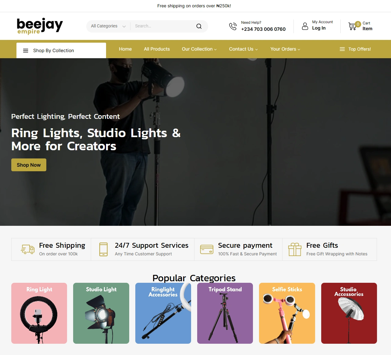 Beejay Empire is a sleek e-commerce site built for effortless shopping... fast, secure, and designed to help the brand sell more with style and simplicity.