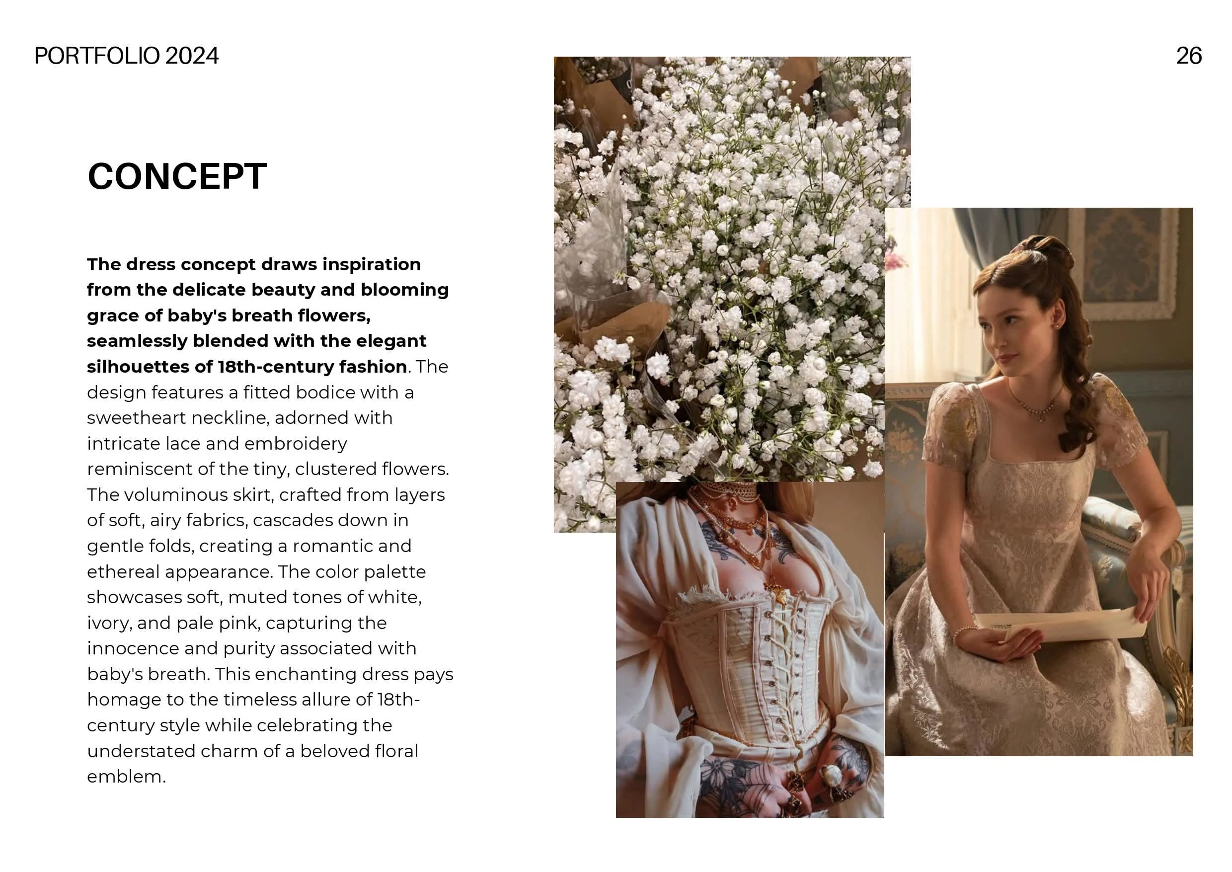 The dress concept draws inspiration from the delicate beauty and blooming grace of baby's breath flowers, seamlessly blended with the elegant silhouettes.