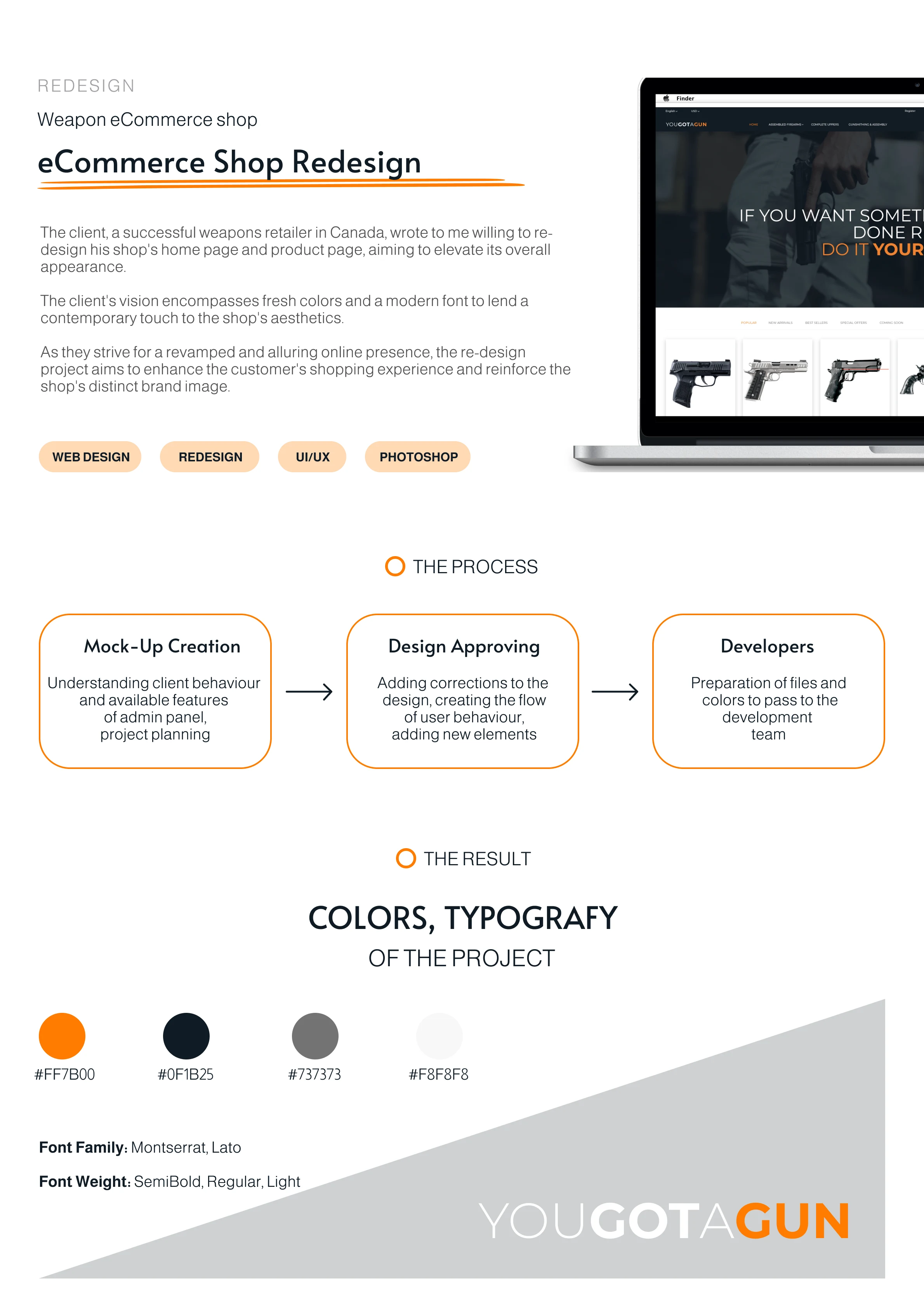 The client, a successful weapons retailer in Canada, wrote to me willing to re-design his shop's home page and product page, aiming to elevate its overall appea