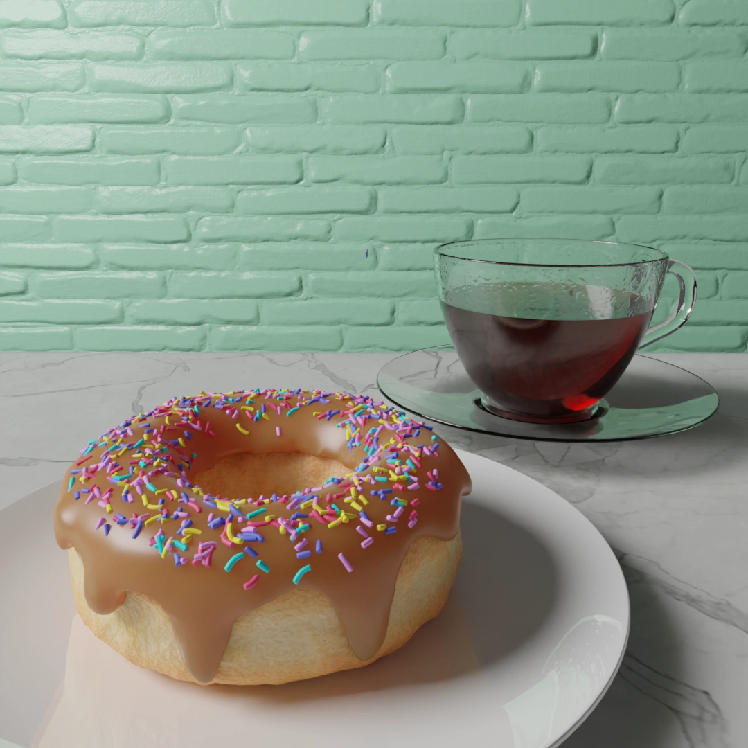 Created a delicious and eye-watering chocolate donut with sprinkles, served alongside with steaming hot lemon tea!