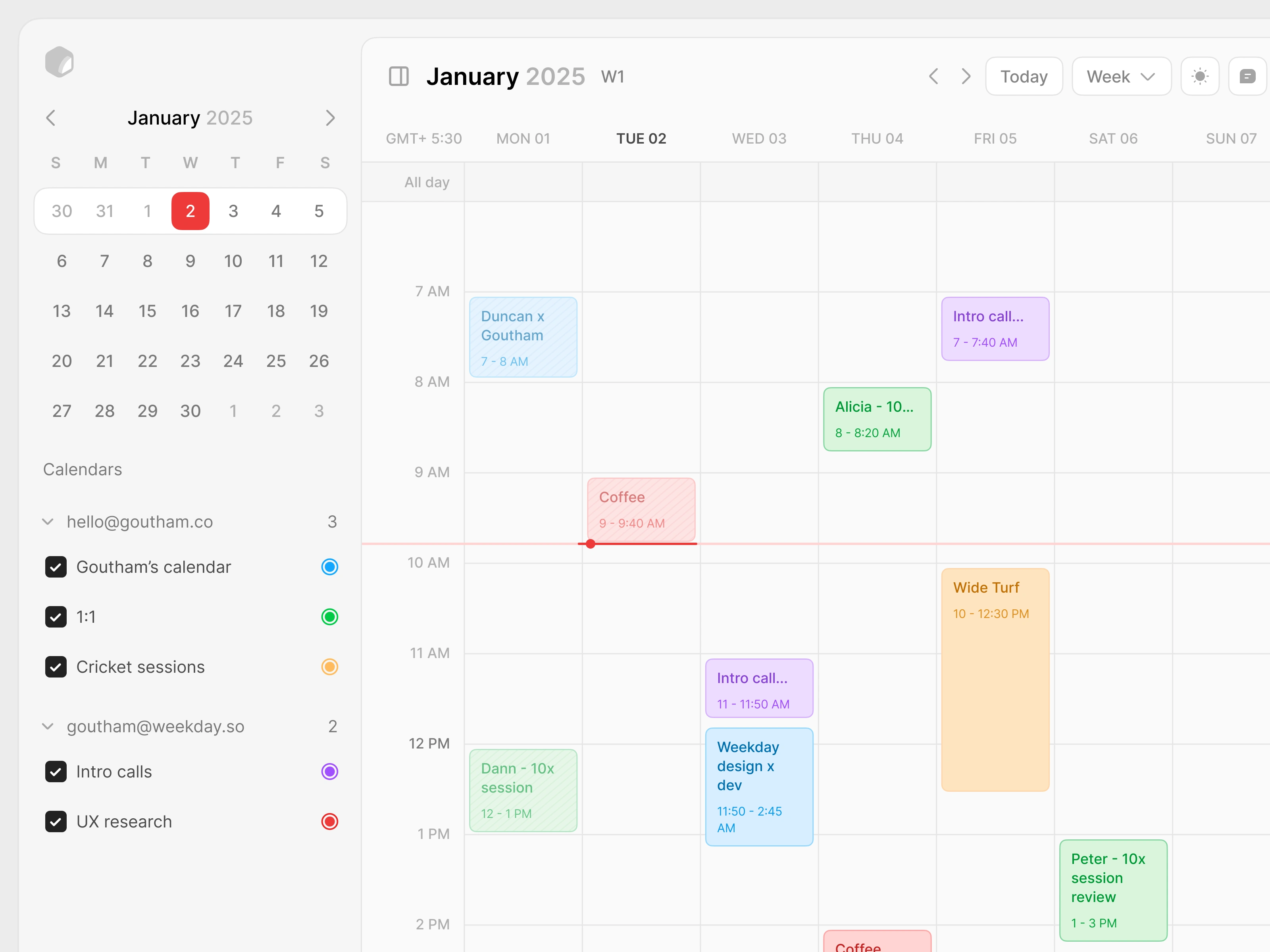 We crafted the complete product design for Weekday.so in just 2 weeks, shaping a modern open-source alternative to Google Calendar. Packed with AI-powered scheduling, privacy at its core, and total user control, Weekday empowers users to manage time smarter, faster, and without compromise.