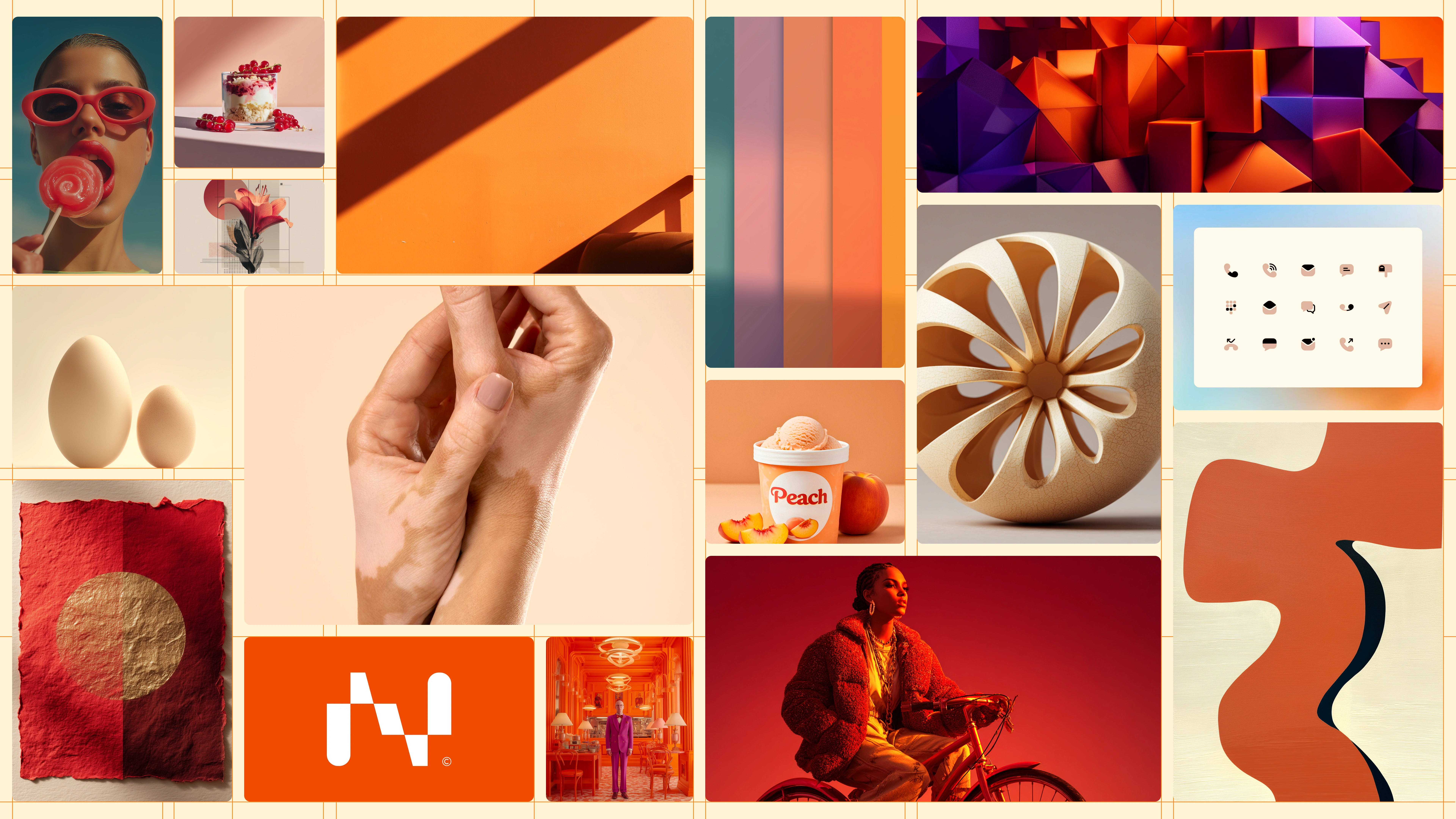 This direction was about creating something bold, warm, and expressive. We wanted it to feel mature but still full of energy - tactile, confident, and a little sensual. The palette pulls from natural tones like clay, skin, and peach to bring in a sense of warmth and depth, while the structured shapes and geometry keep it feeling sharp and modern. It’s less playful, more grounded, something that speaks to creativity and confidence while still feeling human and emotional.