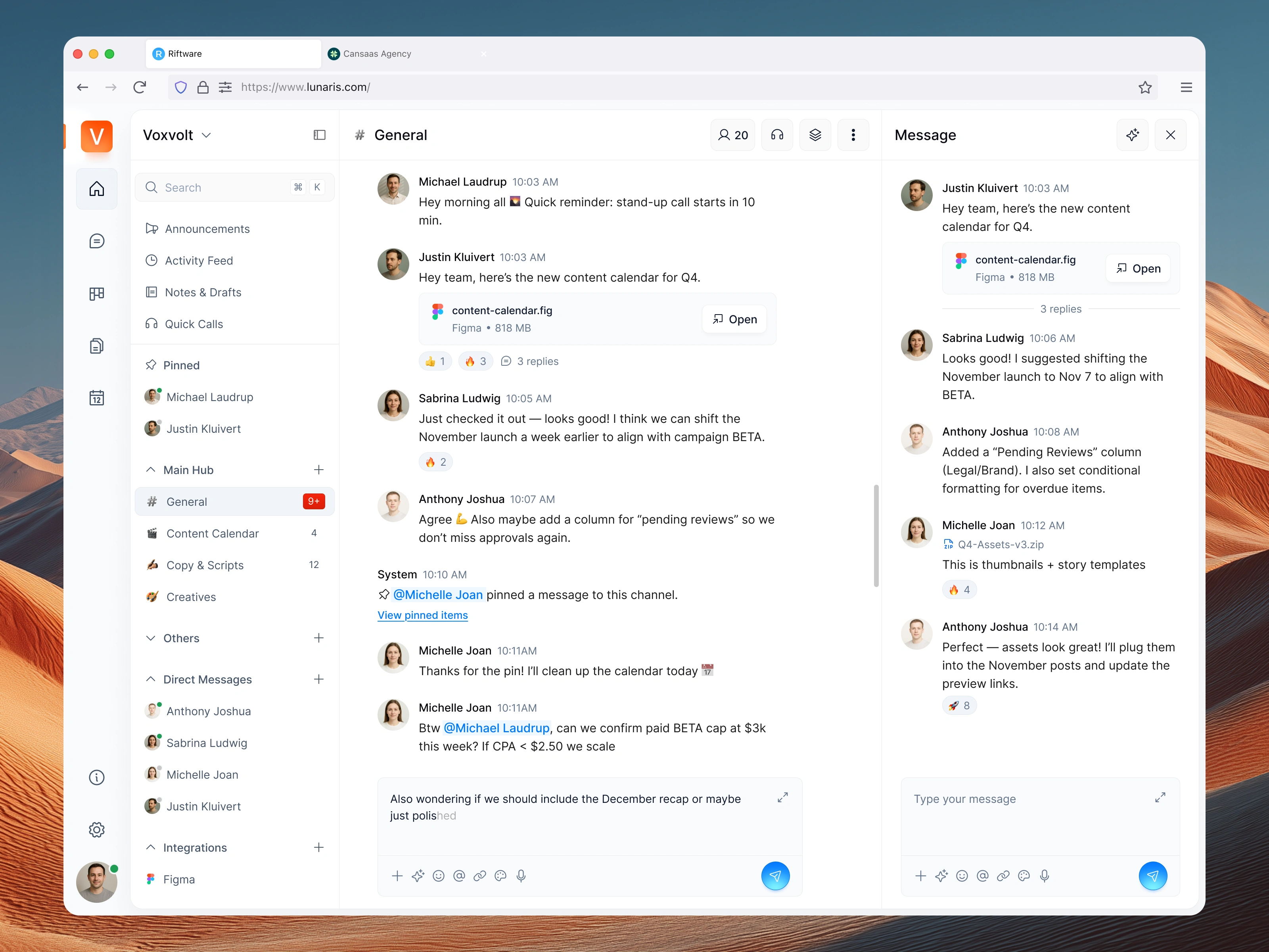 The Team Communication Dashboard is a modern collaboration interface built to enhance productivity, transparency, and team alignment. Designed for SaaS or internal team environments, it merges messaging, task updates, and file sharing in a unified workspace. The dashboard delivers a structured, intuitive experience that enables teams to manage conversations, coordinate projects, and make faster decisions all within a clean, minimal interface.