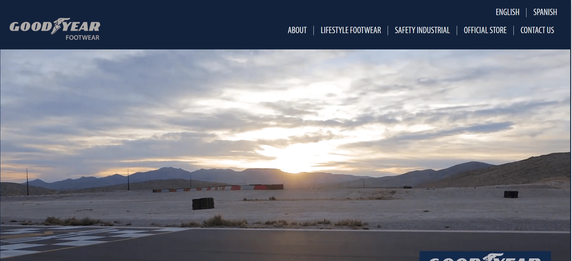 The online presence for Goodyear Footwear, showcasing their latest footwear collections with a sleek design.