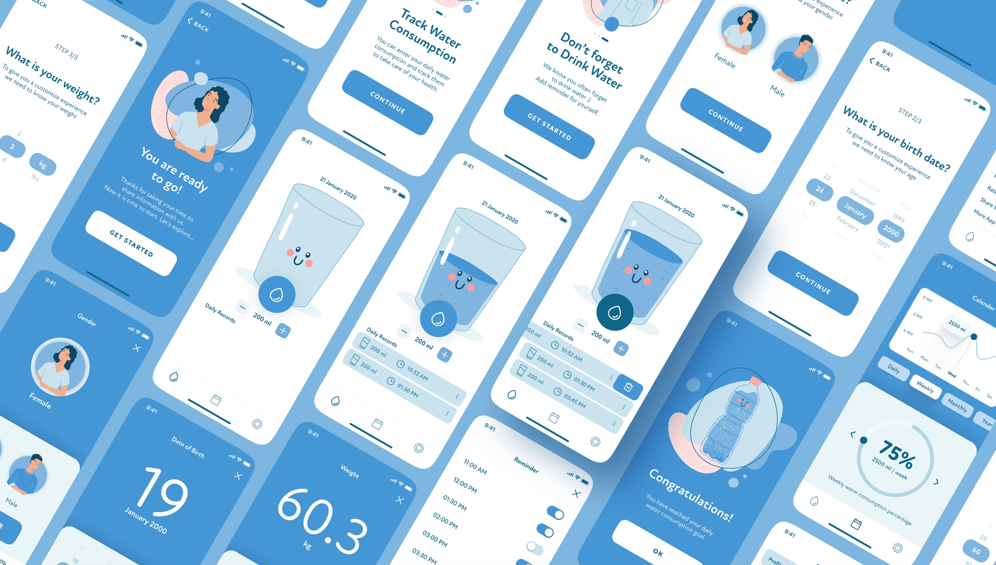 Drink Water is a water-tracking app that sends personalized reminders to help users stay hydrated based on their gender, weight, and age.
