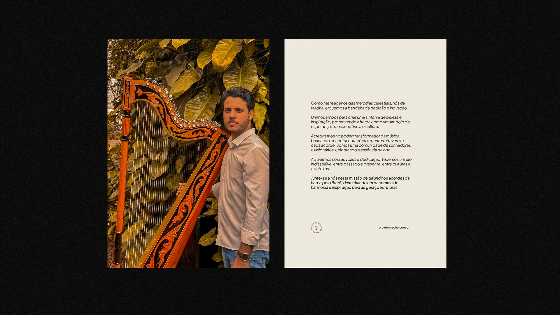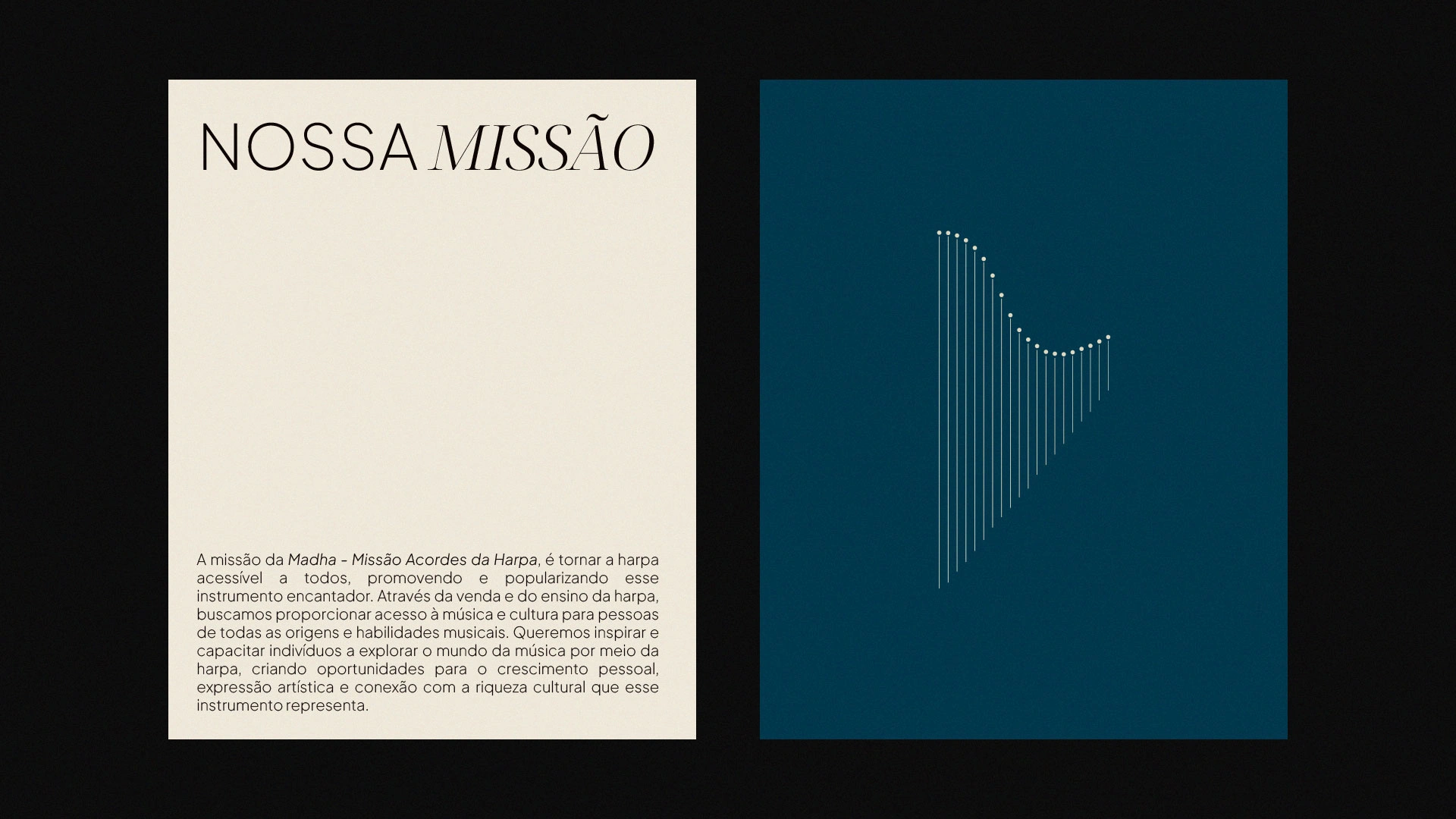 With a logo that exudes elegance and innovation, the clean typographic combination invites you to embark on a musical journey, where each letter tells a story. And at the center of this narrative, the letter A, inspired by the essence of the harp itself, where contrasts and curves come together in a perfect chord, conveying the duality of tradition and modernity. Thus, we present our logo: an expression of warmth, modernity, and passion for music.