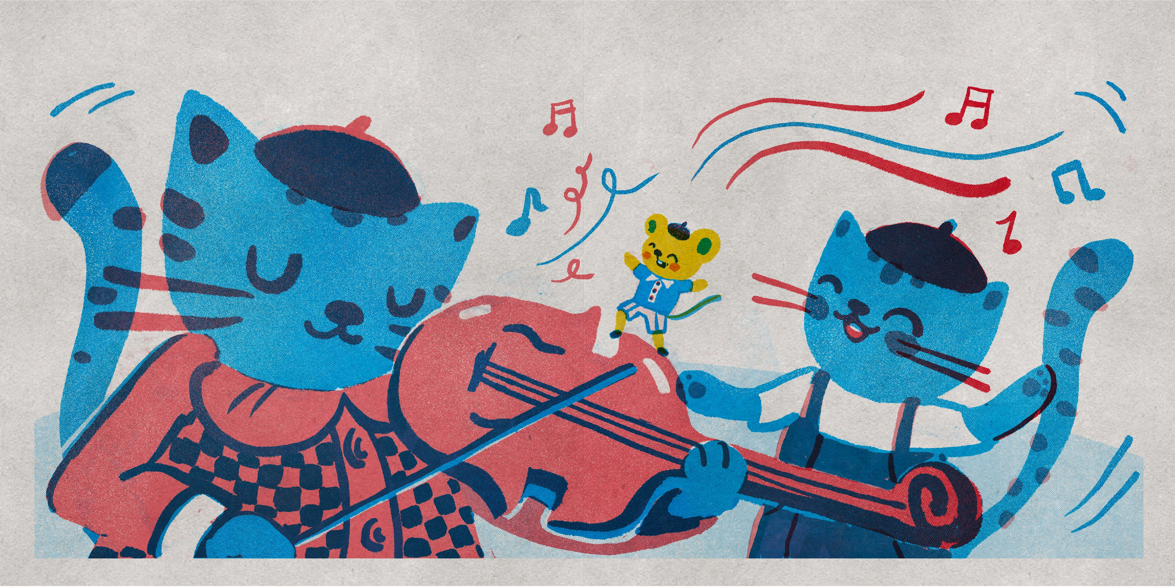 I used limited color Palette and imitated riso print style creatng the illustrations on Procreate